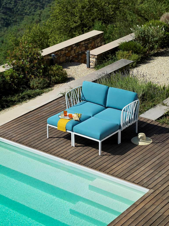 Диван пластиковый с подушками Nardi Komodo 2, белый, синий