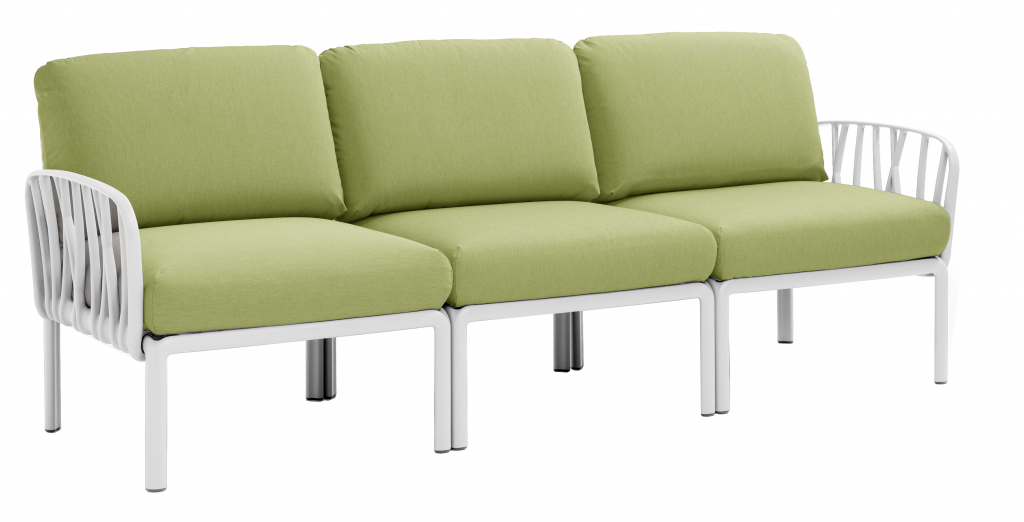 Вы можете купить Диван пластиковый с подушками Nardi Komodo 3, белый, авокадо оптом в нашем магазине, предложим цену с оптовой скидкой.