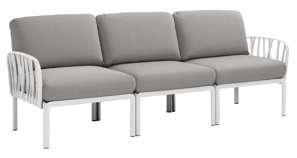 Диван пластиковый с подушками Nardi Komodo 3, белый, серый