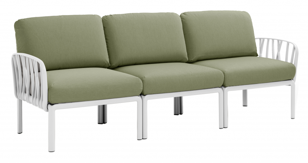 Дизайн: Raffaello Galiotto. На выставке Salone del Mobile 2018 в Милане Nardi представили новую коллекцию модульной мебели Komodo, куда входят различные модульные элементы, благодаря чему можно создавать различные комбинации. Модули Komodo выполнены из стеклопластика, имеют складные спинки и боковины, съемные подушки, благодаря чему можно составить диван любой длины, превратить отдельные модули в столики или пуфы. Ветвистая переплетенная конструкция вытекает из строгого геометрического дизайна, который также включает инновационную систему соединения между спинкой и сиденьем, осуществленную с помощью простого вращения. Последнее решение позволяет избежать непривлекательных стыков и открытых отверстий и поддерживает эстетическую гармонию плетенной конструкции на сиденье и спинке. Особенности: Размер спинки: 685х545 мм. Вес спинки: 2 кг. Размер подлокотника: 675х385 мм. Вес подлокотника: 1.7 кг. Размер подушки на спинку: 710х450х220 мм. Вес подушки: 1.3 кг. Модель выполнена из перерабатываемого материала - стеклопластика (полипропилен, стекловолокно). Возможные цвета каркаса: белый (bianco), антрацит (antracite), тортора (tortora), агава (agave). Возможные цвета подушек из акрила: серый (grigio), розовый (rosa quarzo). Возможные цвета подушек из ткани Sunbrella: синий (adriatic), лед (ghiaccio), авокадо (avocado), джунгли (giungla). Возможные цвета подушек из ткани Sunbrella Laminato: холст (canvas). Возможные цвета подушек из ткани TECH: панама (panama). Сиденья можно закрепить с одной стороны, а спинки и подлокотники можно прикрепить с любой стороны. Нескользящие ножки. Матовая отделка. Изделие сертифицировано CATAS. Изделие устойчиво к воздействию УФ-лучей. В состав входят: Модуль правый, размер: 720х780х880 мм – 1 шт. Модуль левый, размер: 720х780х880 мм – 1 шт. Модуль центральный: 720х780х880 мм – 1 шт. Данные производителя об упаковке: Модуль правый: картонная упаковка, размер: 730х540х735 мм, объем: 0.29 м³, количество в упаковке: 1 шт. Модуль левый: картонная упаковка, размер: 730х540х735 мм, объем: 0.29 м³, количество в упаковке: 1 шт. Модуль центральный: картонная упаковка, размер: 730х540х735 мм, объем: 0.29 м³, количество в упаковке: 1 шт. Открыть инструкцию по сборке. Цена на сайте указана за модель с каркасом белого цвета и подушками из ткани Sunbrella. Цены на другие модели Вы можете уточнить у менеджеров. Можно докупать модули и корректировать размеры мебели под необходимые размеры. Элементы серии Кomodo комбинируются между собой в любой последовательности, создавая индивидуальные решения для Вашего интерьера.Характеристики
