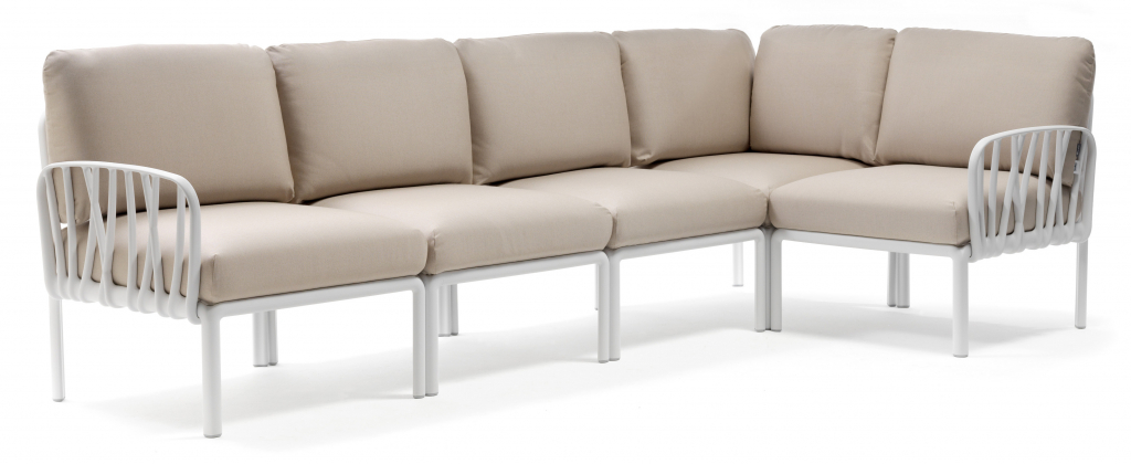Вы можете купить Диван пластиковый с подушками Nardi Komodo 5, белый, холст оптом в нашем магазине, предложим цену с оптовой скидкой.