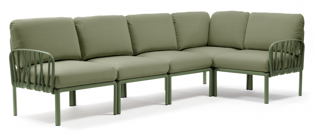 Дизайн: Raffaello Galiotto. На выставке Salone del Mobile 2018 в Милане Nardi представили новую коллекцию модульной мебели Komodo, куда входят различные модульные элементы, благодаря которым можно создавать различные комбинации. Модули Komodo выполнены из стеклопластика, имеют складные спинки и боковины, съемные подушки, благодаря чему можно составить диван любой длины, превратить отдельные модули в столики или пуфы. Ветвистая переплетенная конструкция вытекает из строгого геометрического дизайна, который также включает инновационную систему соединения между спинкой и сиденьем, осуществленную с помощью простого вращения. Последнее решение позволяет избежать непривлекательных стыков и открытых отверстий и поддерживает эстетическую гармонию плетеной конструкции на сиденье и спинке. Особенности: Модульный диван включает в себя: 5 сидений, 6 спинок, 2 подлокотника, подушки на сиденья и спинки. Модель выполнена из полностью перерабатываемого материала - стеклопластика (полипропилен, стекловолокно) - прочного, нетоксичного и антистатичного, устойчивого к любой погоде и средам с повышенной соленостью. Сиденья можно закрепить с одной стороны, а спинки и подлокотники можно прикрепить с любой стороны. Возможные цвета каркаса: белый (bianco), антрацит (antracite), тортора (tortora), агава (agave). Возможные цвета подушек из акрила: серый (grigio), розовый (rosa quarzo). Возможные цвета подушек из ткани Sunbrella: синий (adriatic), лед (ghiaccio), авокадо (avocado), джунгли (giungla), холст (canvas). Возможные цвета подушек из ткани TECH: панама (panama). Матовая отделка, нескользящие ножки. Изделие сертифицировано CATAS. Открыть технические характеристики. Открыть инструкцию по сборке. Можно докупать модули и корректировать размеры мебели под необходимые размеры. Элементы серии Кomodo комбинируются между собой в любой последовательности, создавая индивидуальные решения для Вашего интерьера.Характеристики