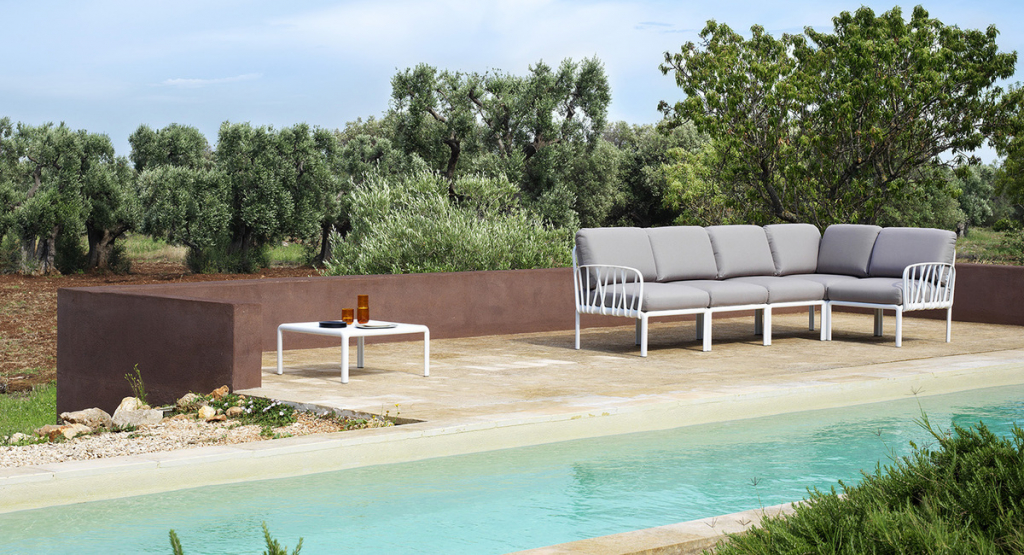Диван пластиковый с подушками Nardi Komodo 5, белый, серый