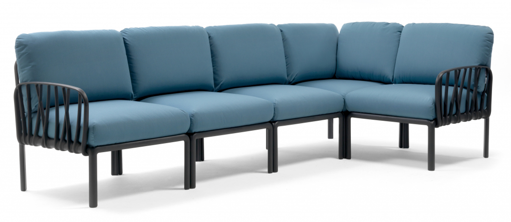 Диван пластиковый с подушками Nardi Komodo 5, антрацит, синий