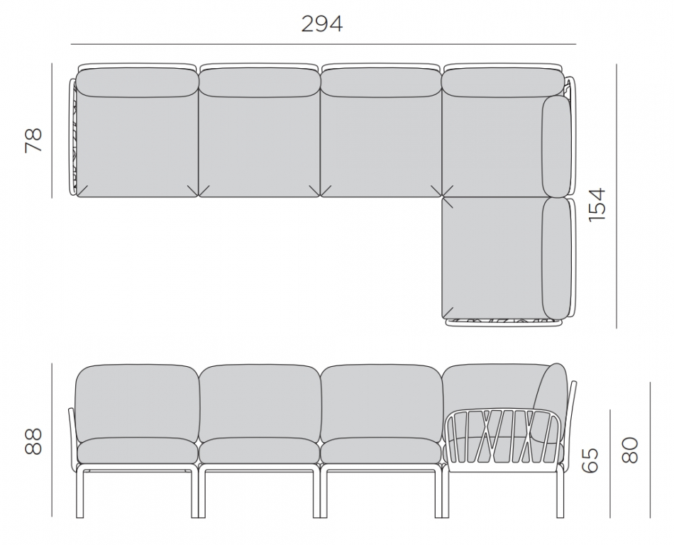 Дизайн: Raffaello Galiotto. На выставке Salone del Mobile 2018 в Милане Nardi представили новую коллекцию модульной мебели Komodo, куда входят различные модульные элементы, благодаря которым можно создавать различные комбинации. Модули Komodo выполнены из стеклопластика, имеют складные спинки и боковины, съемные подушки, благодаря чему можно составить диван любой длины, превратить отдельные модули в столики или пуфы. Ветвистая переплетенная конструкция вытекает из строгого геометрического дизайна, который также включает инновационную систему соединения между спинкой и сиденьем, осуществленную с помощью простого вращения. Последнее решение позволяет избежать непривлекательных стыков и открытых отверстий и поддерживает эстетическую гармонию плетеной конструкции на сиденье и спинке. Особенности: Модульный диван включает в себя: 5 сидений, 6 спинок, 2 подлокотника, подушки на сиденья и спинки. Модель выполнена из полностью перерабатываемого материала - стеклопластика (полипропилен, стекловолокно) - прочного, нетоксичного и антистатичного, устойчивого к любой погоде и средам с повышенной соленостью. Сиденья можно закрепить с одной стороны, а спинки и подлокотники можно прикрепить с любой стороны. Возможные цвета каркаса: белый (bianco), антрацит (antracite), тортора (tortora), агава (agave). Возможные цвета подушек из акрила: серый (grigio), розовый (rosa quarzo). Возможные цвета подушек из ткани Sunbrella: синий (adriatic), лед (ghiaccio), авокадо (avocado), джунгли (giungla), холст (canvas). Возможные цвета подушек из ткани TECH: панама (panama). Матовая отделка, нескользящие ножки. Изделие сертифицировано CATAS. Открыть технические характеристики. Открыть инструкцию по сборке. Можно докупать модули и корректировать размеры мебели под необходимые размеры. Элементы серии Кomodo комбинируются между собой в любой последовательности, создавая индивидуальные решения для Вашего интерьера.Характеристики