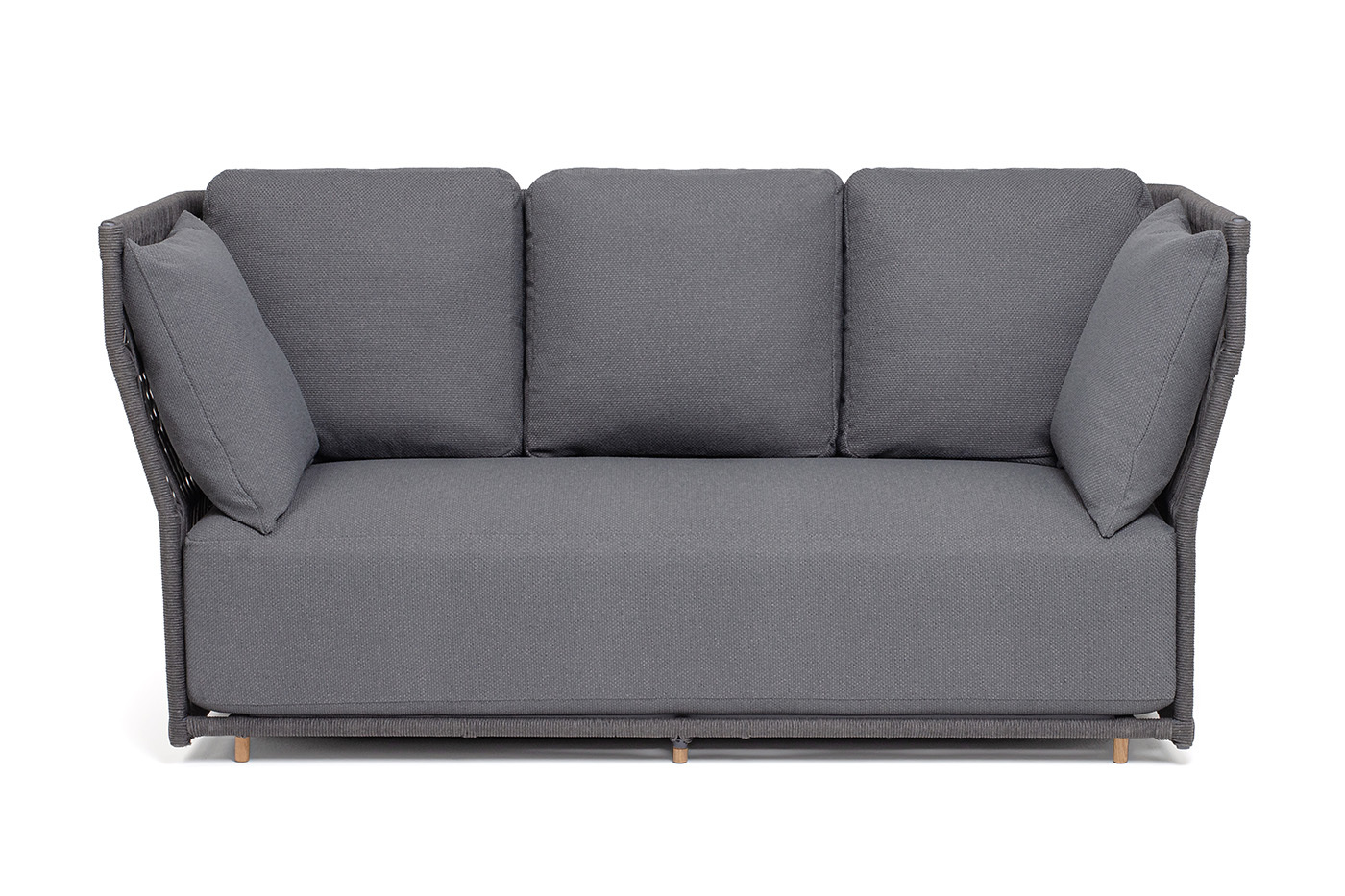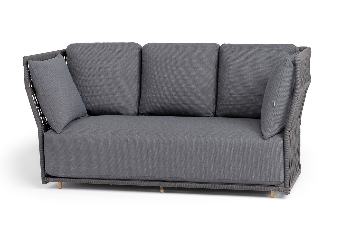 "Лугано" диван 3-местный плетеный из роупа, каркас алюминий темно-серый (RAL7024) муар, роуп темно-серый круглый, ткань темно-серая YB25-0027