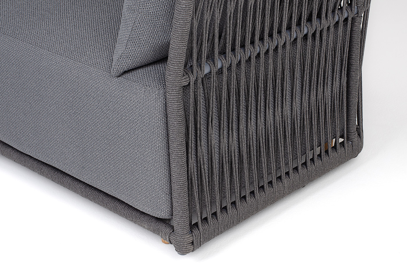 "Лугано" диван 3-местный плетеный из роупа, каркас алюминий темно-серый (RAL7024) муар, роуп темно-серый круглый, ткань темно-серая YB25-0027 | |