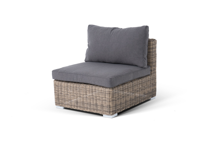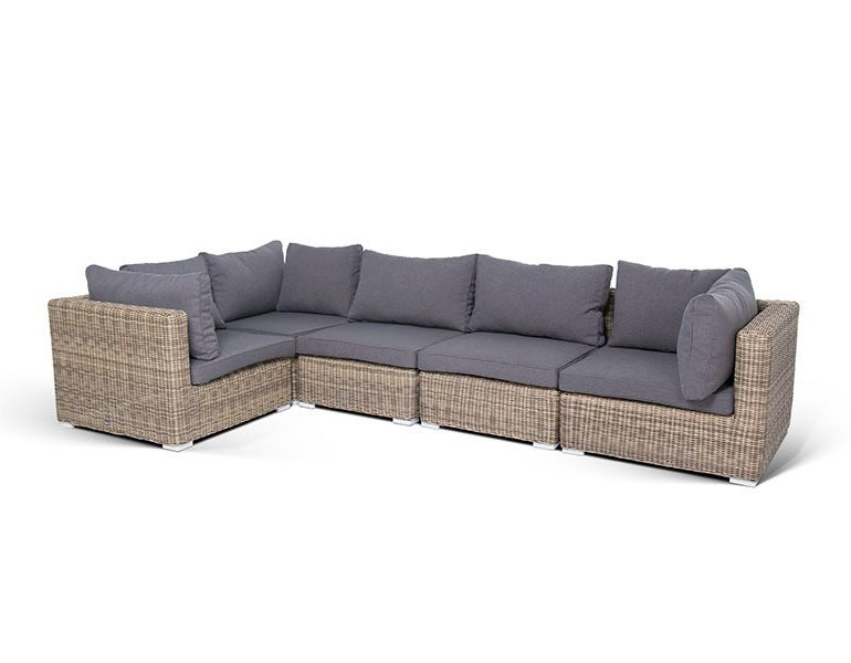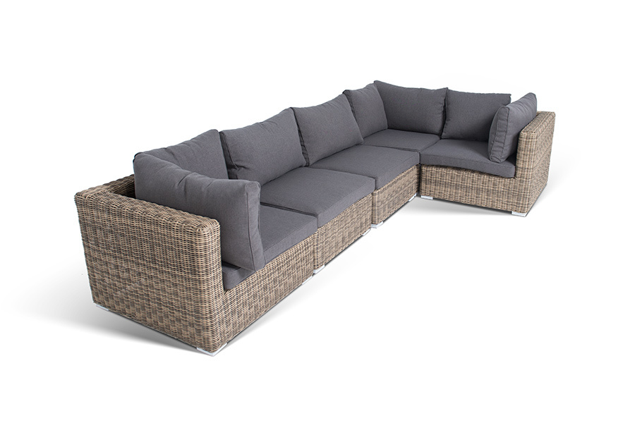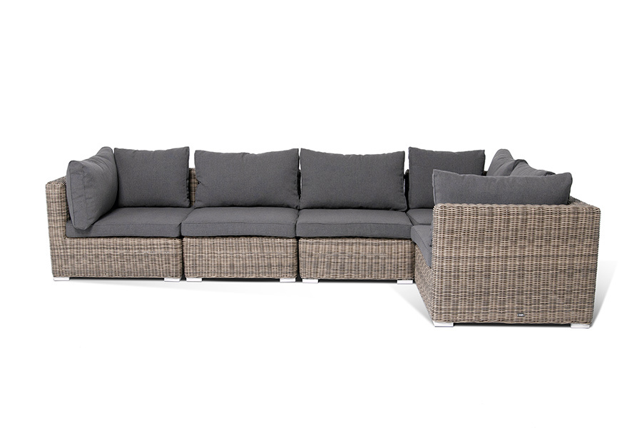 Трансформирующийся диван «Лунго» подходит для одновременного размещения пяти персон. Его каркас выполнен из прочного алюминия. Мебель состоит из трех угловых модулей размером – 860×860×650 мм и двух прямых модулей размером – 740×860×650 мм. Комплект выполнен из круглого искусственного ротанга ручного плетения. Представлена в соломенном цвете. Модульный диван дополняют подушки со съёмными чехлами в сером оттенке. При их пошиве используется полиэстер, плотностью 300гр/м2. Ткань обрабатывается влагоотталкивающей пропиткой для усиления ее защитных качеств. "Лунго" модуль диванный прямой с подушками, цвет соломенный 2шт. 740Х860Х650, "Лунго" модуль диванный угловой с подушками, цвет соломенный 3шт. 860Х860Х650,Бренд | 4SIS |