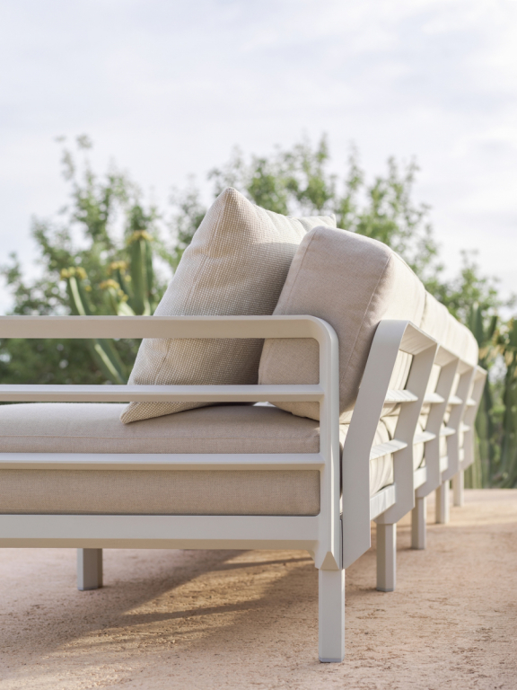 Дизайн: Raffaello Galiotto. На выставке Salone del Mobile 2024 в Милане Nardi представили новую коллекцию модульной мебели Maximo, чья изысканная цветовая палитра стала общей нитью атмосферного внутреннего и наружного пространства, создаваемого дизайнерами. Maximo - это новый модульный диван с каркасом из регенерированной пластика и тканей с высоким содержанием переработанных компонентов, который, начиная с одного модуля кресла, позволяет быстро и легко создавать бесчисленные конфигурации благодаря системе крепления спинки и подлокотников. Изысканный, эстетически привлекательный дизайн: чистые и сбалансированные линии развиваются горизонтально, создавая ощущение глубины и длины; структура из переработанного пластика является цельной и прочной, но визуально облегченной за счет модульных треугольных секций и закругленных деталей. Большие объемы, удобное, глубокое сиденье и гибкая, гармоничная модульность. Мягкие самоцентрирующиеся подушки выполнены из элегантных текстур и тканей, частично регенерированных, и отличаются высоким техническим качеством: они выдерживают пребывание на открытом воздухе, чехлы можно снимать и стирать, они доступны в четырех очаровательных цветах. В сочетании с декоративными подушками с немного другимрисунком, но идеально подходящими оттенками они придают дивану индивидуальность и мягкость. Коллекция Maximo также включает в себя журнальный столик и держатель для предметов, который можно прикрепить к сиденью, оба выполнены из переработанного пластика. Модульность и широкая цветовая гамма подчеркивают исключительную универсальность дизайна Maximo, концепцию жизни на открытом воздухе, которая простирается от домашней обстановки до индустрии HoReCa. Матовый гипсовый цветGesso- название, которое вызывает связь и уважение к природе регенерированного материала. Изделия из пластика Nardi отличаются эксклюзивной, приятной шероховатой фактурой. Наличие тонких не идеально однородных прожилок делает каждый предмет мебели уникальным и неповторимым, непохожим на все остальные. На выходе получается продукт с отличными физико-техническими характеристиками и чрезвычайно чистая и текстурированная эстетическая привлекательность, как у гипса. Мебель создается с использованием 30% переработанного стеклопластика и 70% нового материала. Тщательно продуманный процесс производства исключает влияние вторичного сырья на качество продукции. Таким образом, Nardi не только предлагает долговечные и надежные изделия, но и вносят вклад в защиту окружающей среды, давая пластику вторую жизнь. Это шаг к устойчивому будущему, где экология и качество идут рука об руку. Особенности: Каркас выполнениз регенерированного стеклопластика, рожденного в рамках проектаRegeneration и полученного путем переработки полипропиленовой мебели. Выдерживает негативное воздействие окружающей среды (осадки, ультрафиолет). Регенерированный стеклопластик может менять цвет из-за использования переработанного материала. Матовая отделка, нескользящие ножки. Изделие протестированов соответствии со стандартами. Обивка подушек - акриловая ткань Sunbrella: 50% переработанного и окрашенного в массе акрилового волокна Sunbrella, 47% окрашенногов массе волокна Sunbrella®,3% полиэстера. Светостойкость 8/8, стирка при 30°, водоотталкивающая обработка без PFAS, грязеотталкивающая обработка. Чехлы 