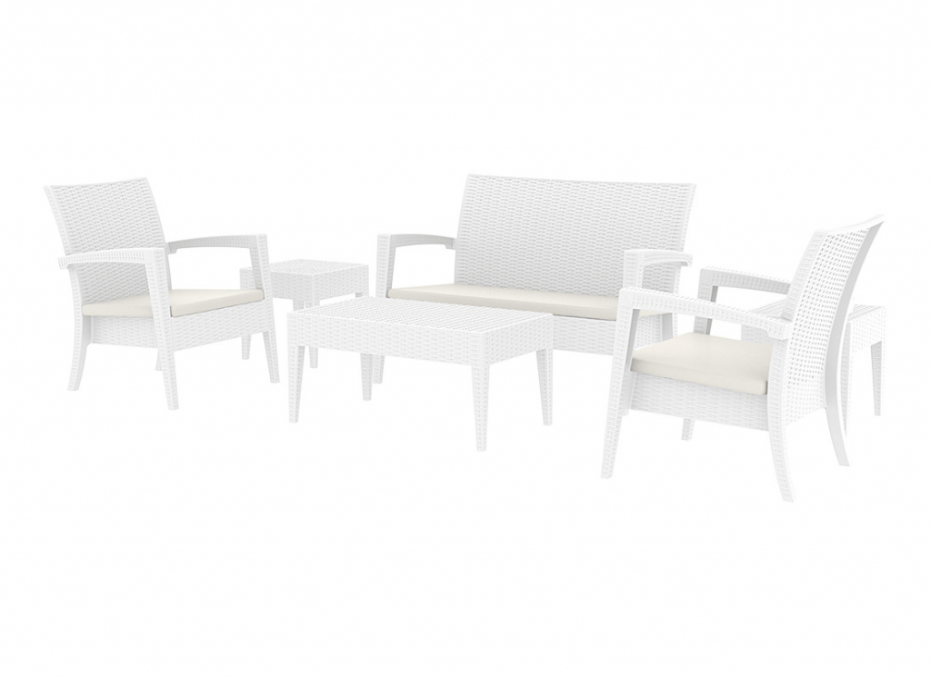 Вы можете купить Диван пластиковый плетеный двухместный с подушкой Siesta Contract Miami Lounge Sofa, белый оптом в нашем магазине, предложим цену с оптовой скидкой.