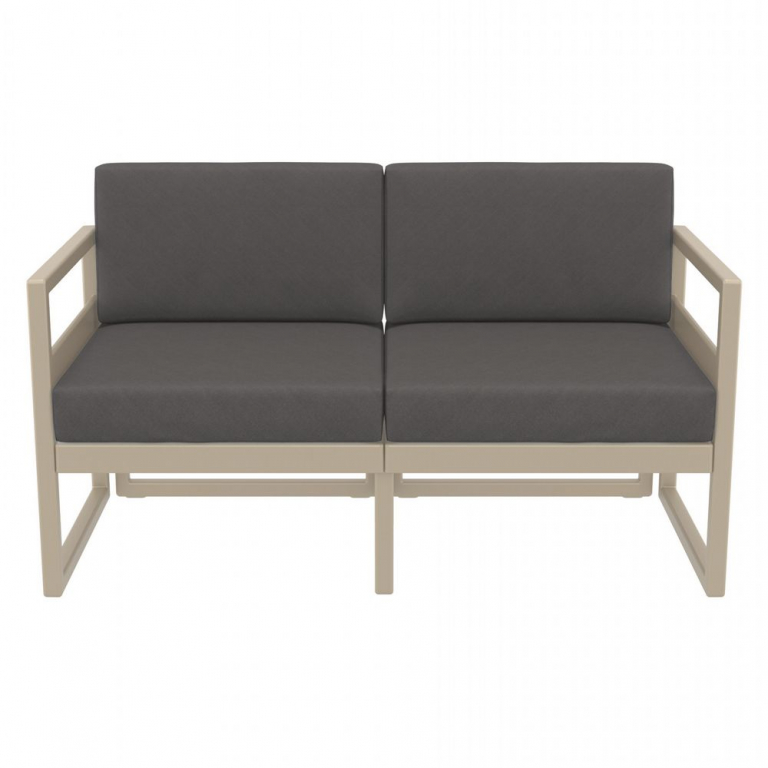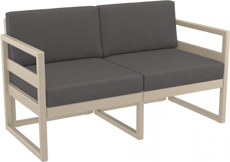 Диван пластиковый двухместный с подушками Siesta Contract Mykonos, бежевый, темно-серый