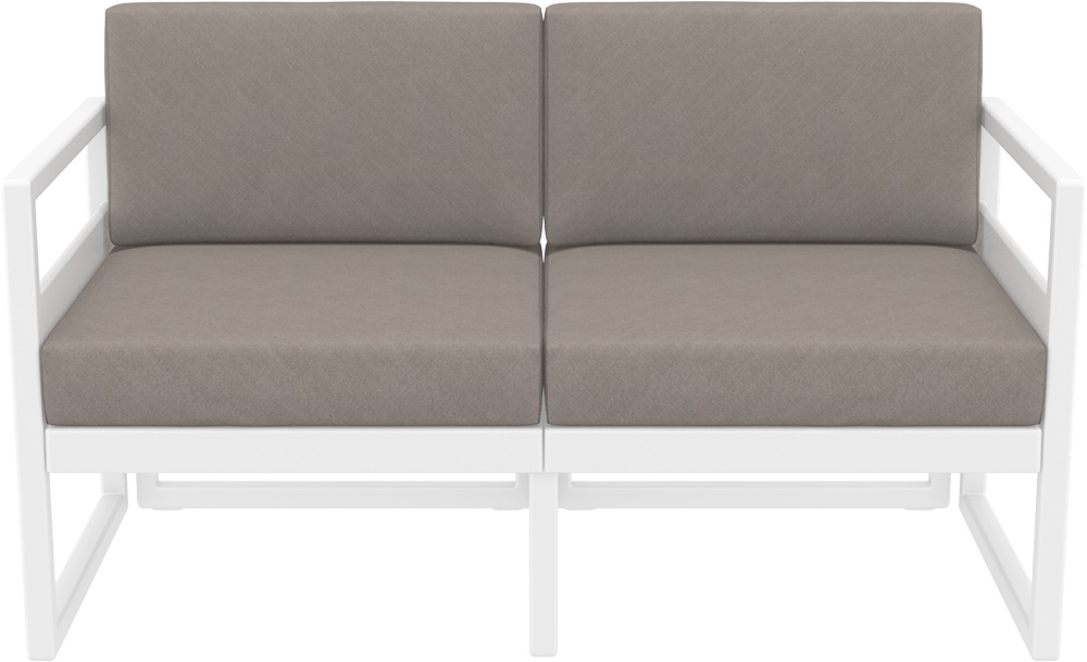 Диван пластиковый двухместный с подушками Siesta Contract Mykonos, белый, светло-коричневый