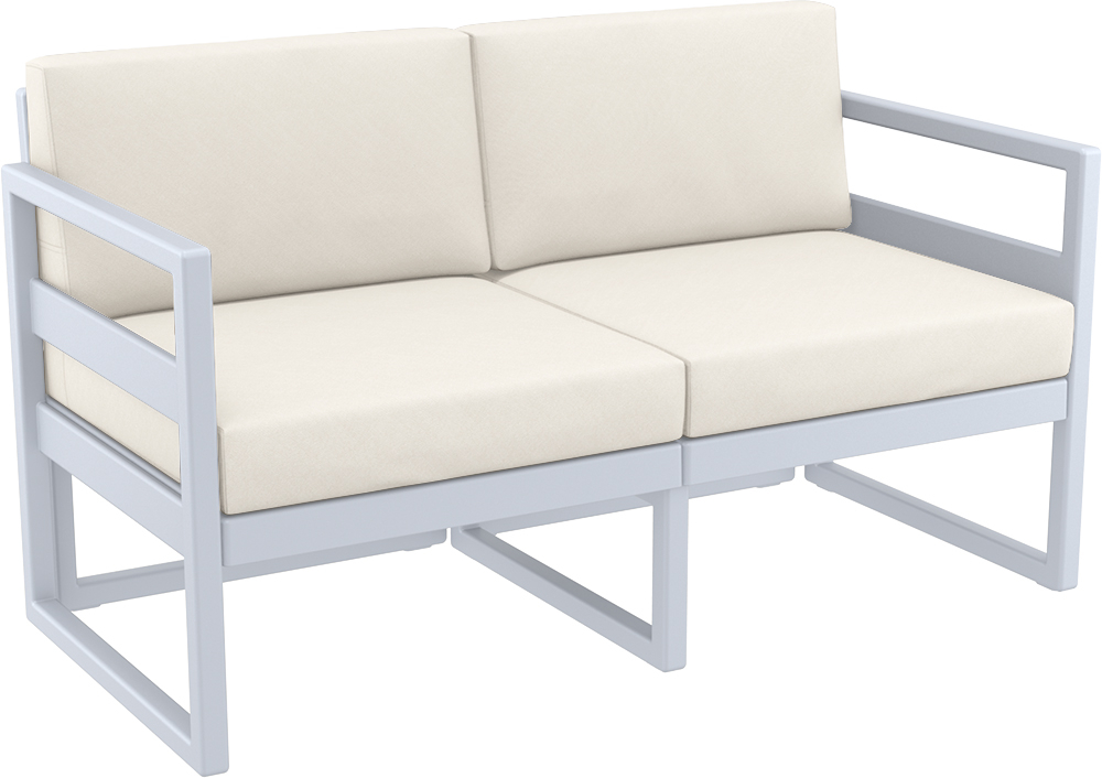 Диван пластиковый двухместный с подушками Siesta Contract Mykonos, серебристый, бежевый