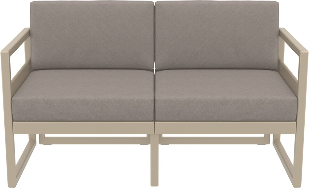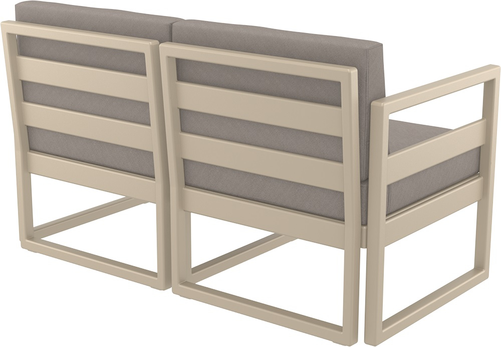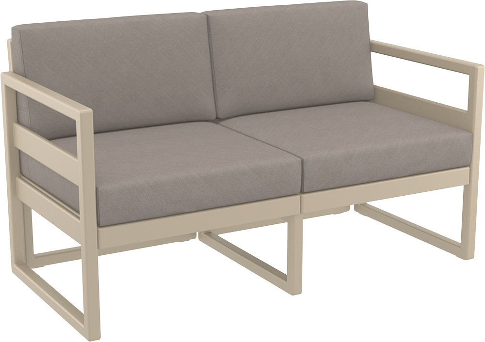 Диван пластиковый двухместный с подушками Siesta Contract Mykonos, бежевый, светло-коричневый