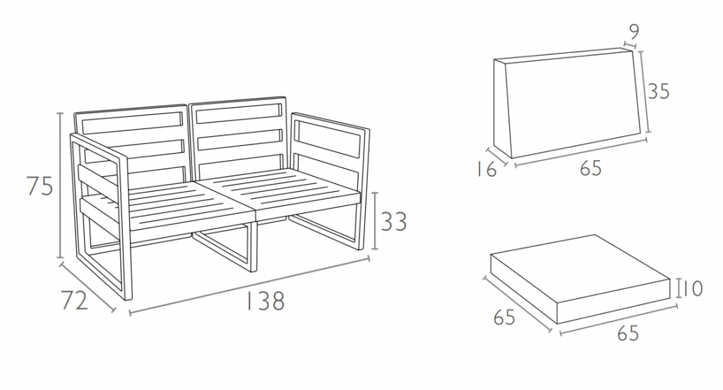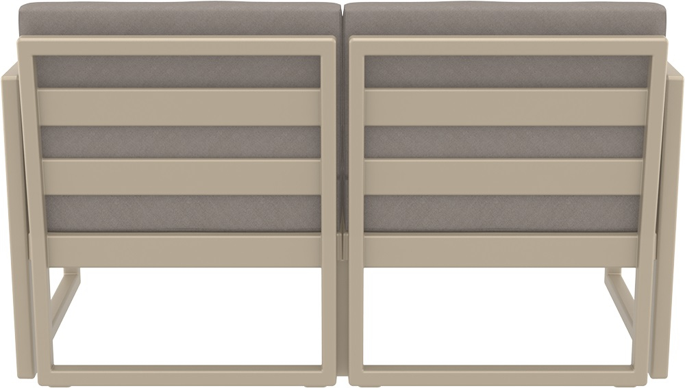 Модульный двухместный диван Mykonos предназначен для удобной самостоятельной сборки, изготовлен из прочного атмосферостойкого пластика, армированного стекловолокном. В комплекте идут удобные мягкие подушки, обеспечивающие дополнительный комфорт. Пластиковый мягкий диван серии Mykonos станет отличным выбором для обстановки фуд-кортов, кафе, ресторанов и баров. Благодаря использованию высококачественных материалов он долгое время не теряет своего привлекательного внешнего вида, даже несмотря на активную эксплуатацию. Отсутствие металлического каркаса и устойчивость к ультрафиолетовому воздействию обеспечивают использование комплекта Mykonos в том числе и на открытых площадках. Особенности: Каркас дивана выполнен из высококачественного полипропилена, армированного стекловолокном. В комплекте две подушки для спинки и две подушки для сиденья. Выполнены из прочной полиэстеровой ткани, отделаны кантом. Толщина 100 мм. Не имеет металлического каркаса - не ржавеет, не поддается коррозии. Подходит для использования на открытом воздухе и в помещении, выдерживает минусовую температуру до 20 градусов. Изделие сертифицировано CATAS. Изделие устойчиво к воздействию УФ-лучей и атмосферных осадков. Открыть технические характеристики кресла, модуля, подушки на сиденье, подушки на спинку.Характеристики