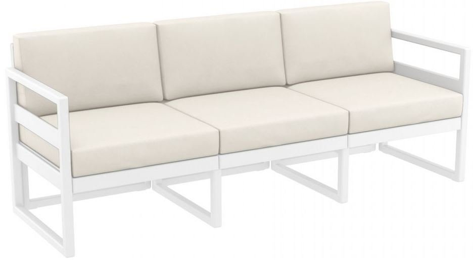 Диван пластиковый трехместный с подушками Siesta Contract Mykonos XL, белый, бежевый