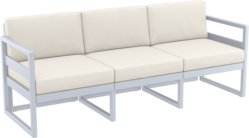 Диван пластиковый трехместный с подушками Siesta Contract Mykonos XL, серебристый, бежевый