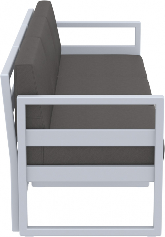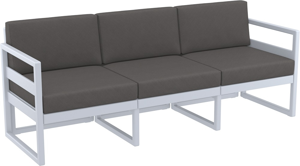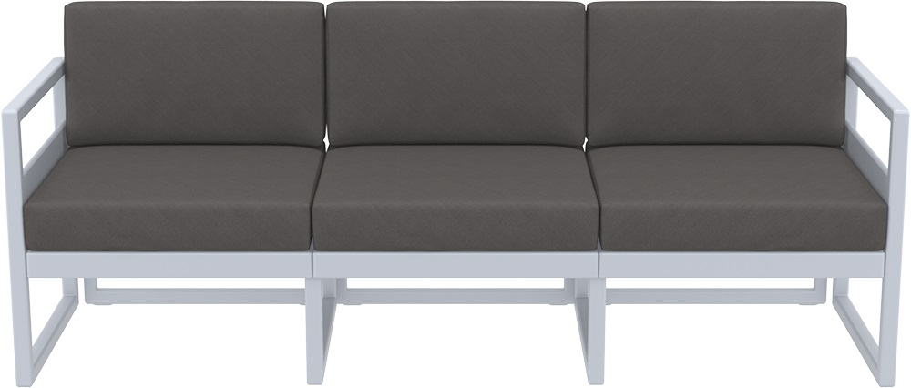Диван пластиковый трехместный с подушками Siesta Contract Mykonos XL, серебристый, темно-серый