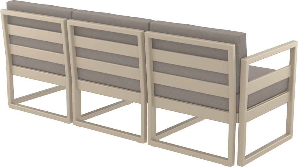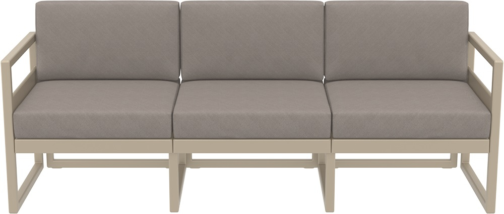 Диван пластиковый трехместный с подушками Siesta Contract Mykonos XL, бежевый, светло-коричневый