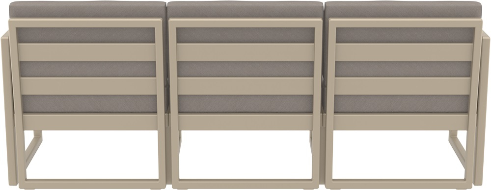 Модульный трехместный диван Mykonos предназначен для удобной самостоятельной сборки, изготовлен из прочного атмосферостойкого пластика, армированного стекловолокном. В комплекте идут удобные мягкие подушки, обеспечивающие дополнительный комфорт. Пластиковый мягкий диван серии Mykonos станет отличным выбором для обстановки фуд-кортов, кафе, ресторанов и баров. Благодаря использованию высококачественных материалов он долгое время не теряет своего привлекательного внешнего вида, даже несмотря на активную эксплуатацию. Отсутствие металлического каркаса и устойчивость к ультрафиолетовому воздействию обеспечивают использование комплекта Mykonos в том числе и на открытых площадках. Особенности: Каркас дивана выполнен из высококачественного полипропилена, армированного стекловолокном. В комплекте две подушки для спинки и две подушки для сиденья. Выполнены из прочной полиэстеровой ткани, отделаны кантом. Толщина 100 мм. Не имеет металлического каркаса - не ржавеет, не поддается коррозии. Подходит для использования на открытом воздухе и в помещении, выдерживает минусовую температуру до 20 градусов. Изделие сертифицировано CATAS. Изделие устойчиво к воздействию УФ-лучей и атмосферных осадков. Открыть технические характеристики кресла, модуля, подушки на сиденье, подушки на спинку.Характеристики