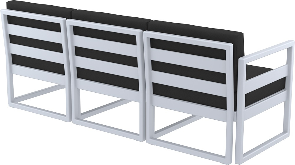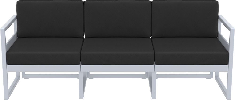 Диван пластиковый трехместный с подушками Siesta Contract Mykonos XL, серебристый, черный