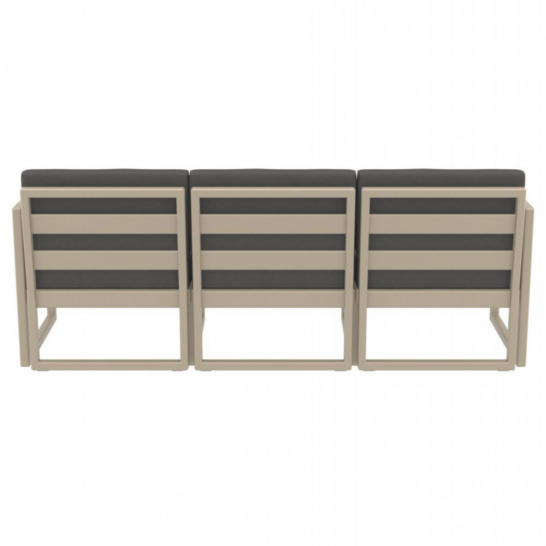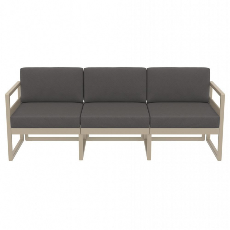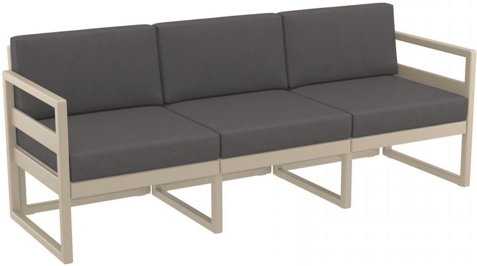 Диван пластиковый трехместный с подушками Siesta Contract Mykonos XL, бежевый, темно-серый