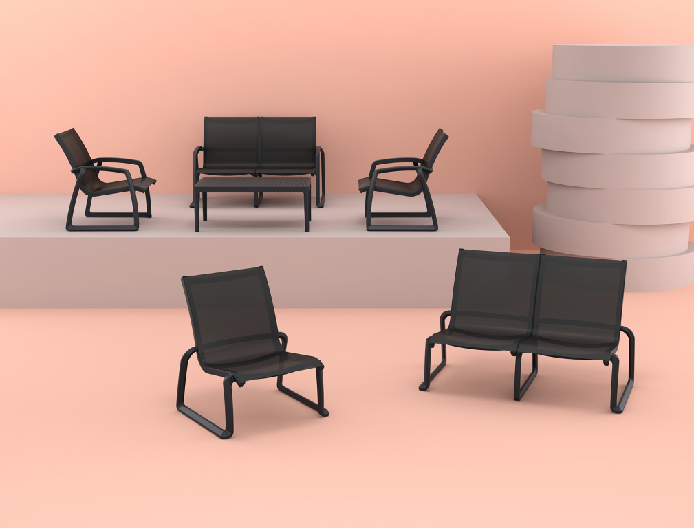 Диван пластиковый двухместный Siesta Contract Pacific Lounge, черный