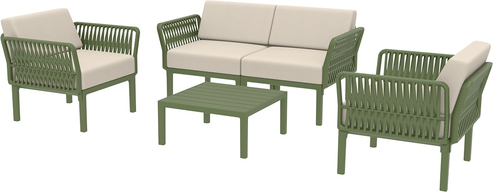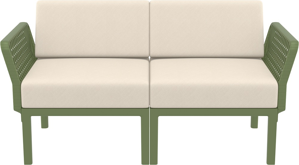 Диван пластиковый двухместный с подушками Siesta Contract Portofino Lounge, зеленый, бежевый