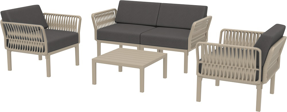Диван пластиковый двухместный с подушками Siesta Contract Portofino Lounge, бежевый, темно-серый