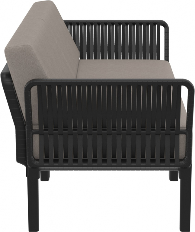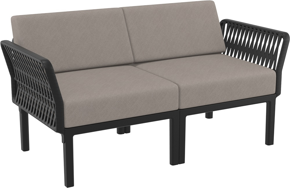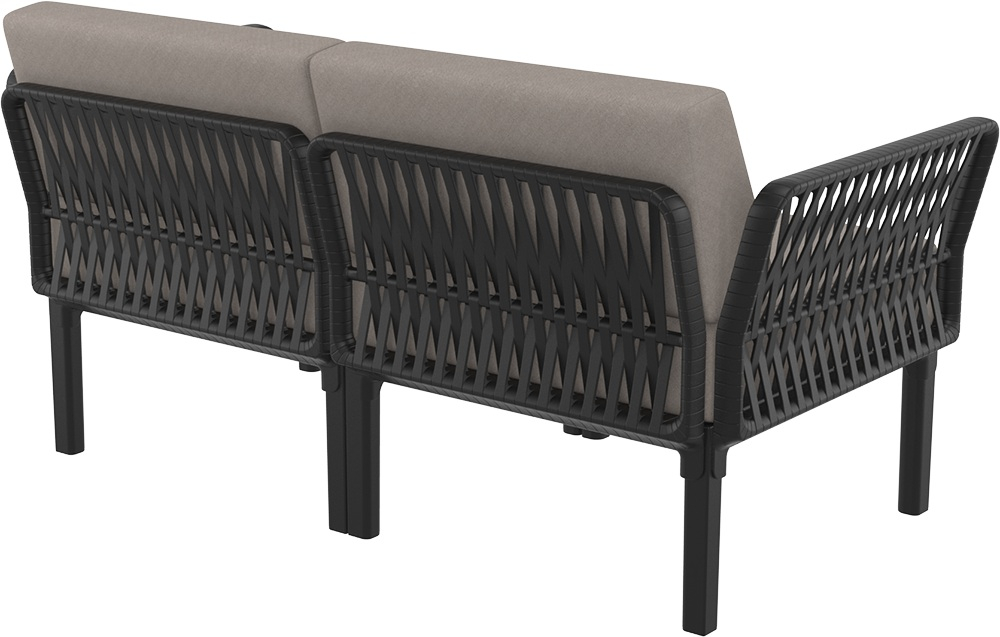 Диван пластиковый двухместный с подушками Siesta Contract Portofino Lounge, черный, светло-коричневый