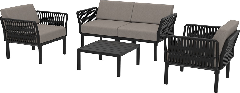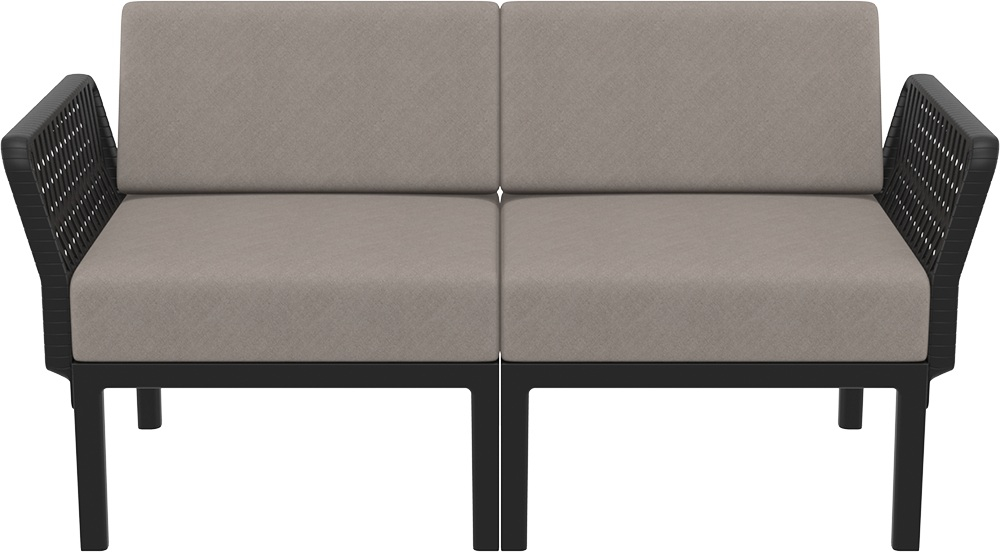 Вы можете купить Диван пластиковый двухместный с подушками Siesta Contract Portofino Lounge, черный, светло-коричневый оптом в нашем магазине, предложим цену с оптовой скидкой.