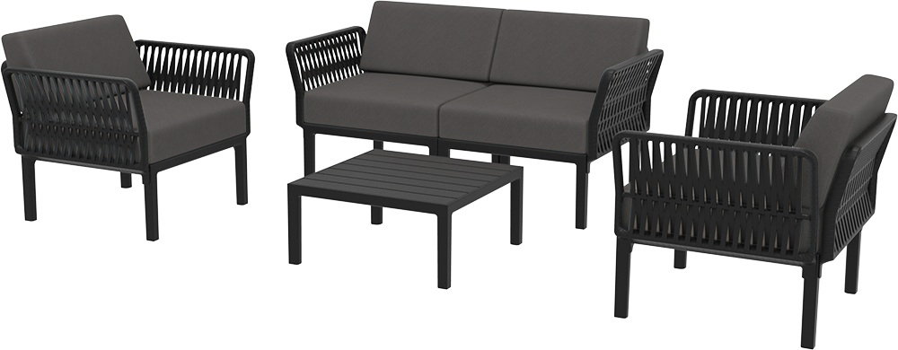 Вы можете купить Диван пластиковый двухместный с подушками Siesta Contract Portofino Lounge, черный, темно-серый оптом в нашем магазине, предложим цену с оптовой скидкой.