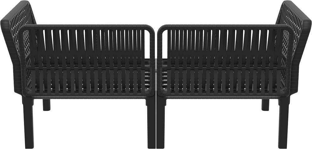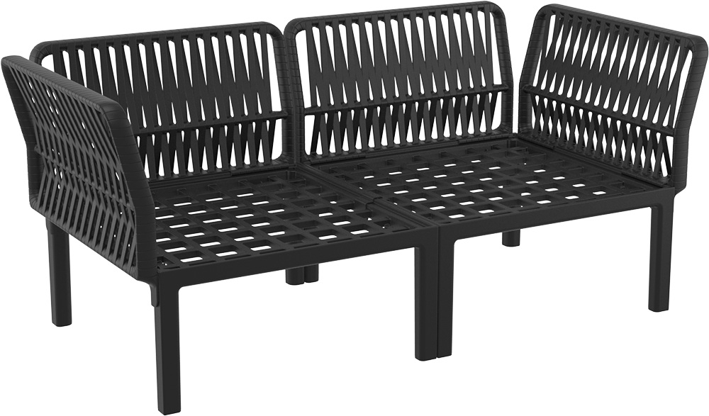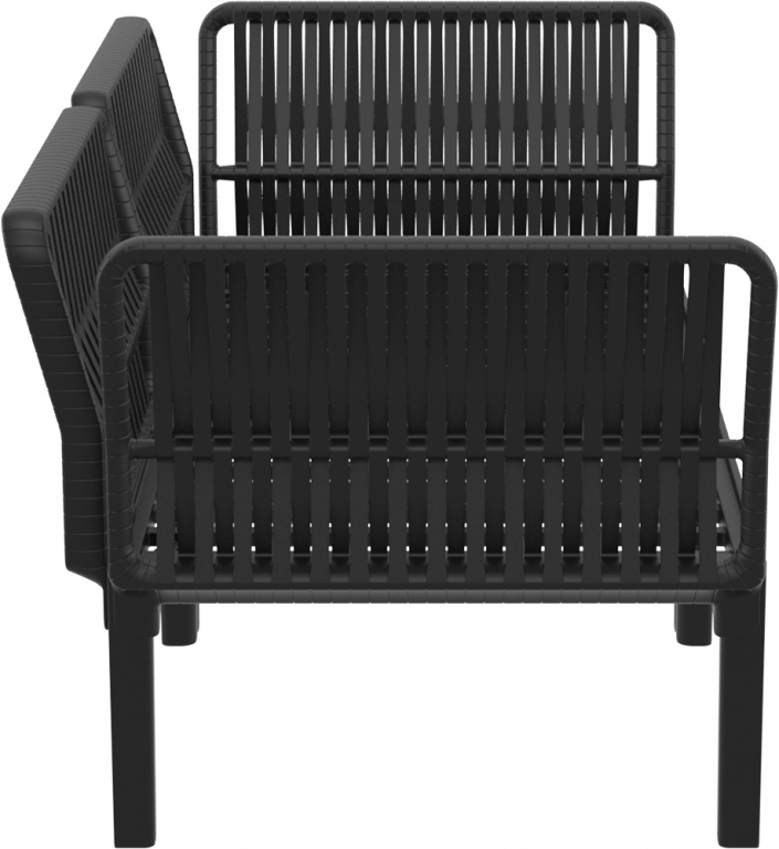 Диван пластиковый двухместный с подушками Siesta Contract Portofino Lounge, черный, темно-серый