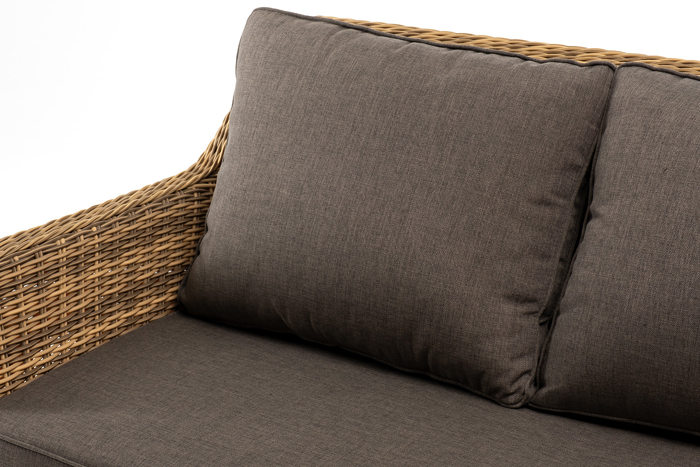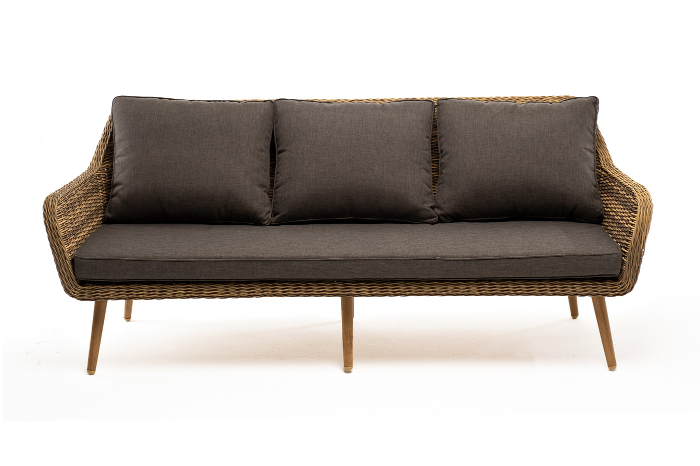 Диван «Прованс» идеально подходит для размещения трех человек. Он имеет алюминиевый каркас, который выдерживает повышенные нагрузки. Размер модели – 1900×800×770 мм. Для оплетки каркаса используется высококачественный искусственный ротанг. Мебель выполнена в соломенном оттенке. Трехместный диван дополняют мягкие подушки в сером цвете со съёмными чехлами. Тканевые изделия выполнены из прочного полиэстера плотностью 300гр/м2. Материал имеет влагоотталкивающую пропитку. *Требуется сборка!Бренд | 4SIS |