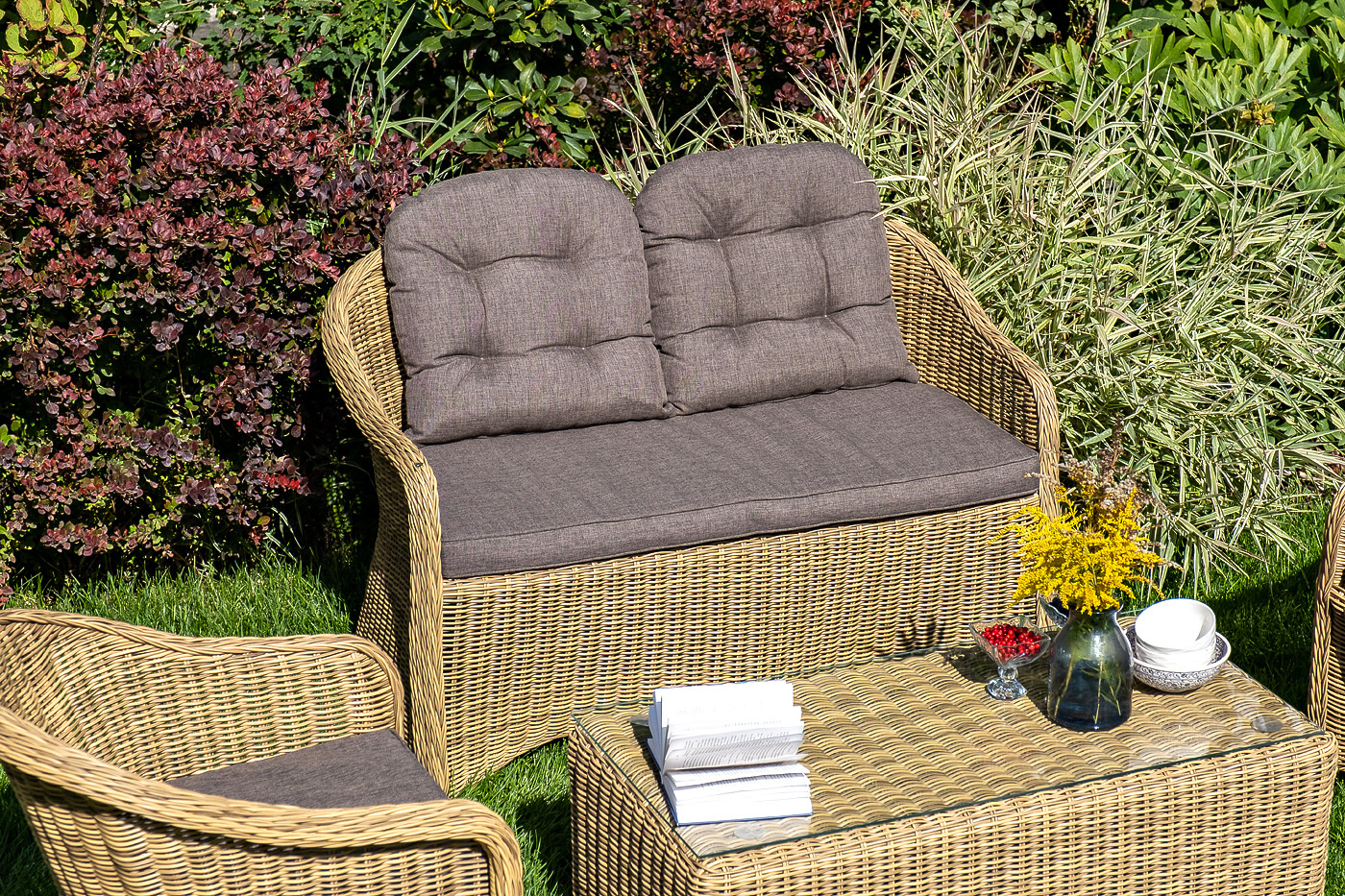 "Равенна" диван двухместный плетенный из ротанга, цвет соломенный | |