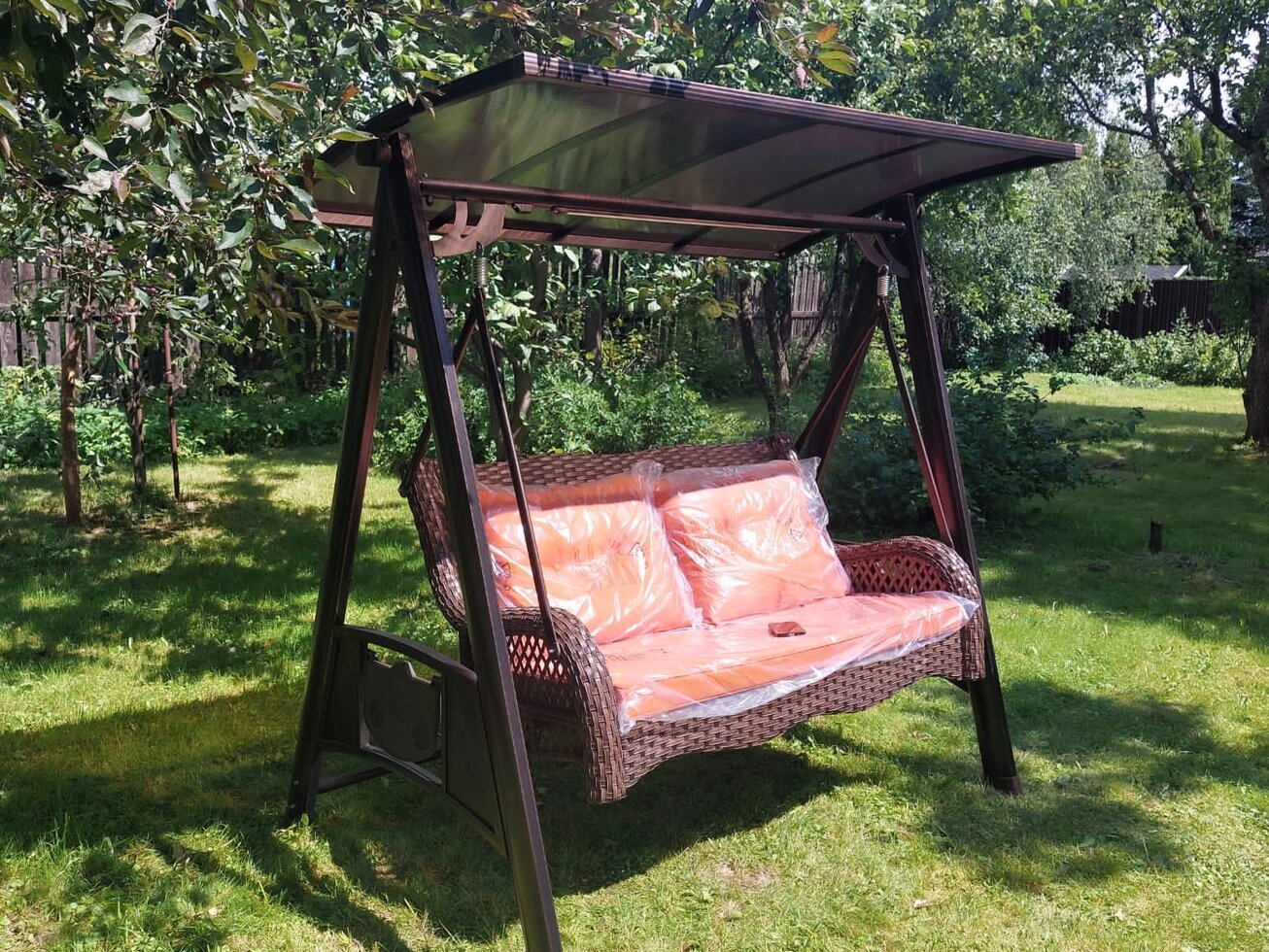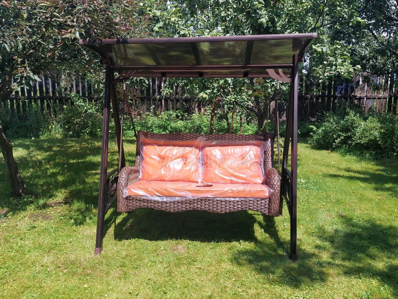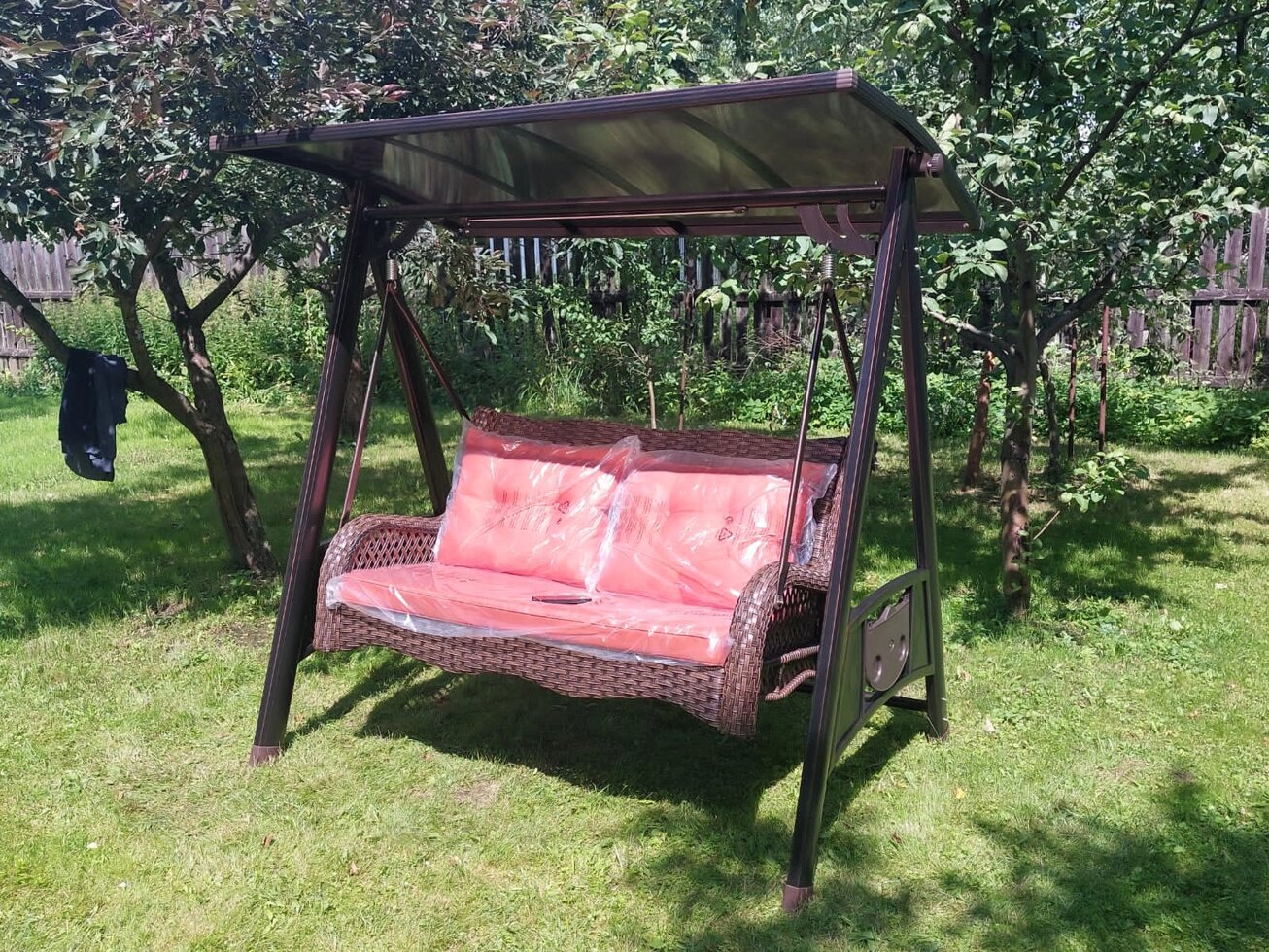 Садовые качели Dragon изготовлены из алюминия с шикарным плетеным диваном из искусственного ротанга с мягкими подушками, готовым вместить компанию до 3 человек. Пластиковая крыша качелей обеспечивает защиту от дождя и солнца. Данная модель качелей снабжена LED подсветкой. Размеры: 200*120*H190 см. Вес 53 кг.