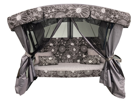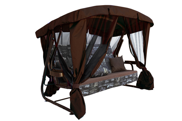 Качели садовые 3-х местные Мебель Сад Ранго Премиум Веста (каркас корич, м/э чер, корич, бел рис.тём газета)2уп