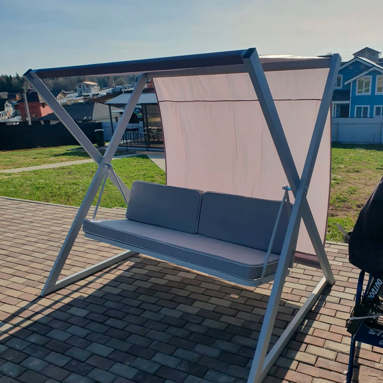 Качели садовые 3-х местные Сакура с004(каркас серебряный, м/э серый рис.без рисунка)2 упаковки
