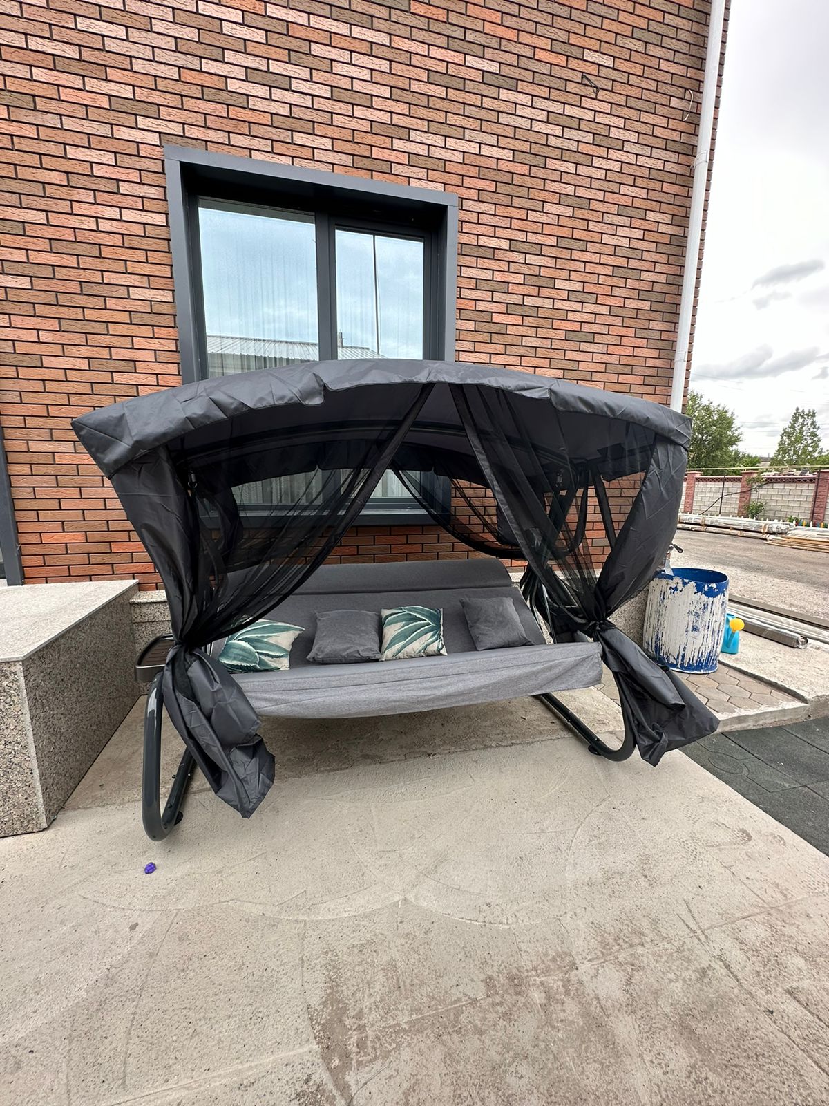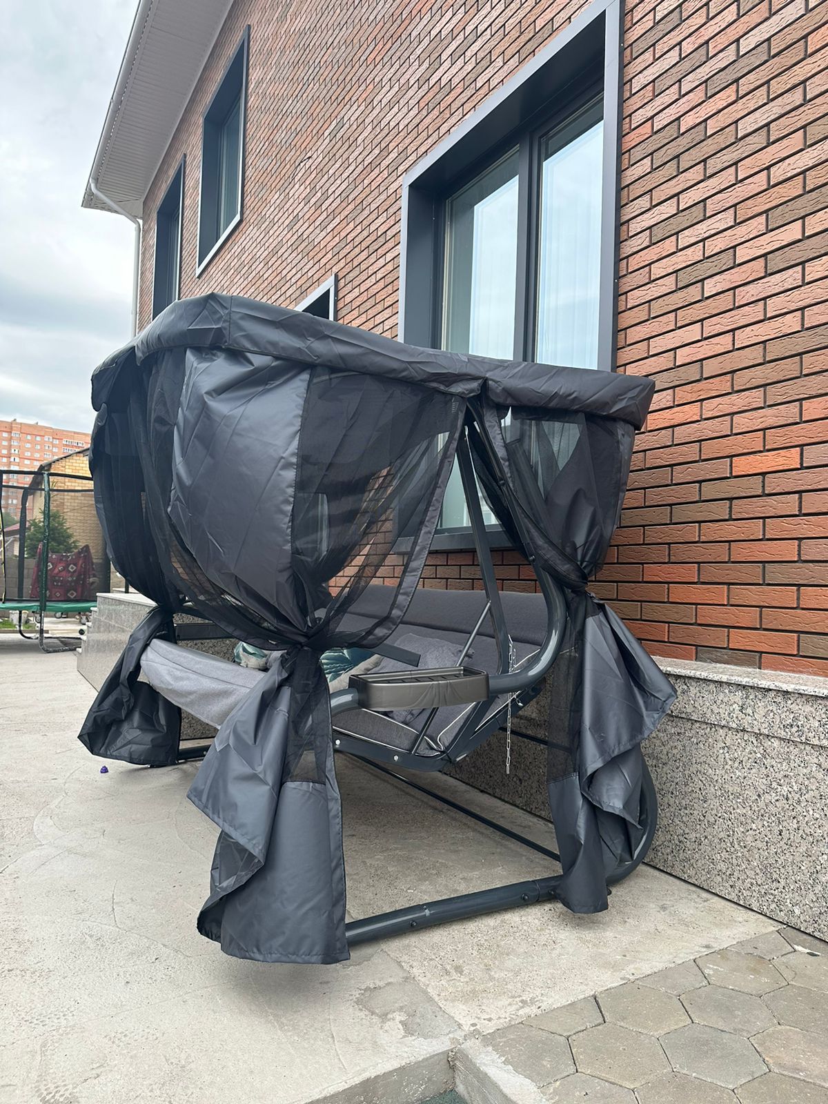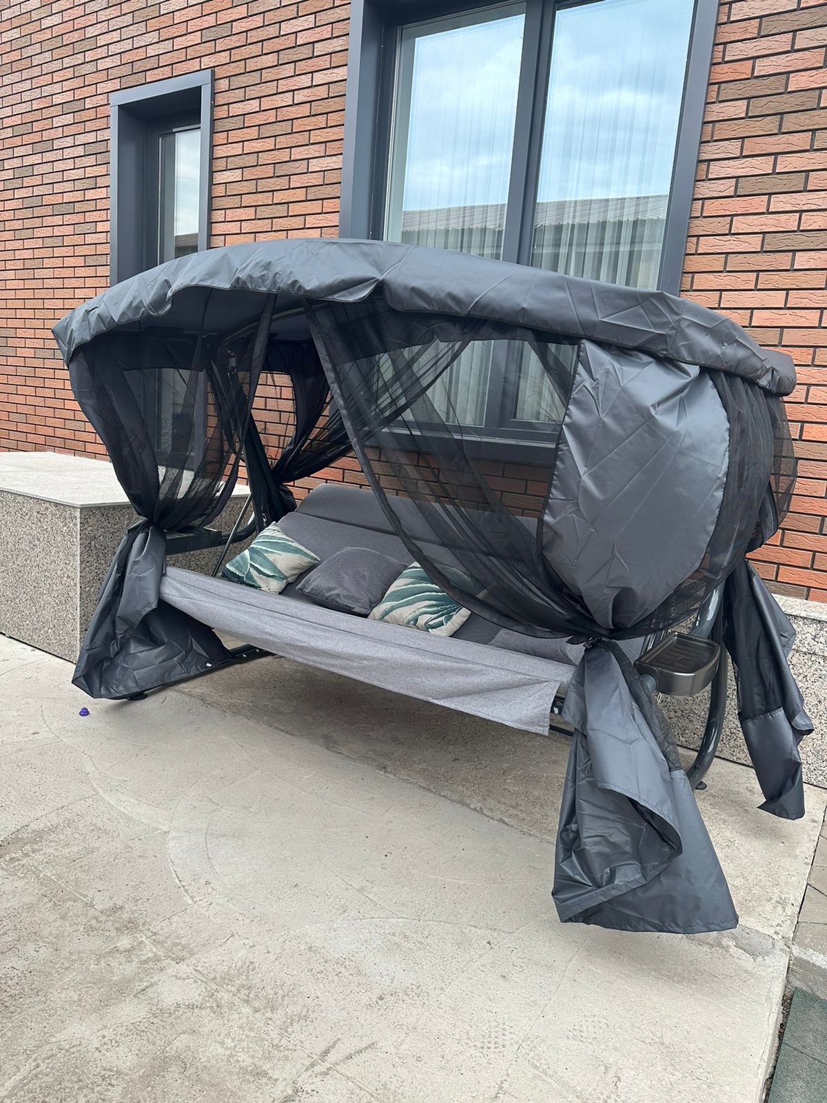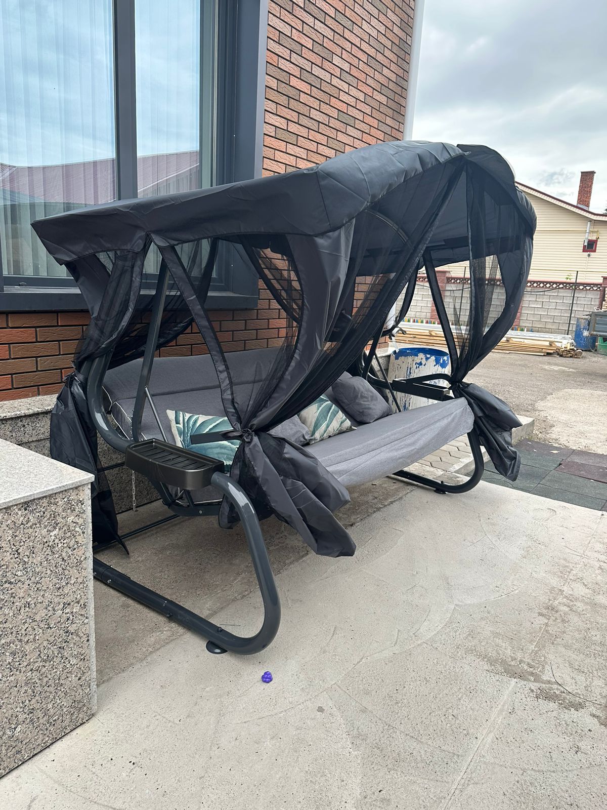 Габариты изделия (Ш/ГхДхВ) : 150х255х175 Цвет каркаса : графит Материал каркаса : сталь Труба : 60х60 Цвет чехла мягкого элемента/матраса : серый Наполнитель мягкого элемента/матраса : холлкон Толщина мягкого элемента : 80 Тип основания сиденья : наварная решетка Допустимая нагрузка : 400 Регулировка спинки : Да Подушки : Да Москитная сетка : Да Механизм наклона : звеньями цепи на требуемый угол наклона, с фиксацией в горизонтальном положении Страна производства : БЕЛАРУСЬ Дополнительно : Комплектация: тент-противомоскитная сетка 2 подушки по цвету м/э . Дополнительно 2 подушки в подарок цвет в ассортименте, допускаются цвет разных вариантовХарактеристики