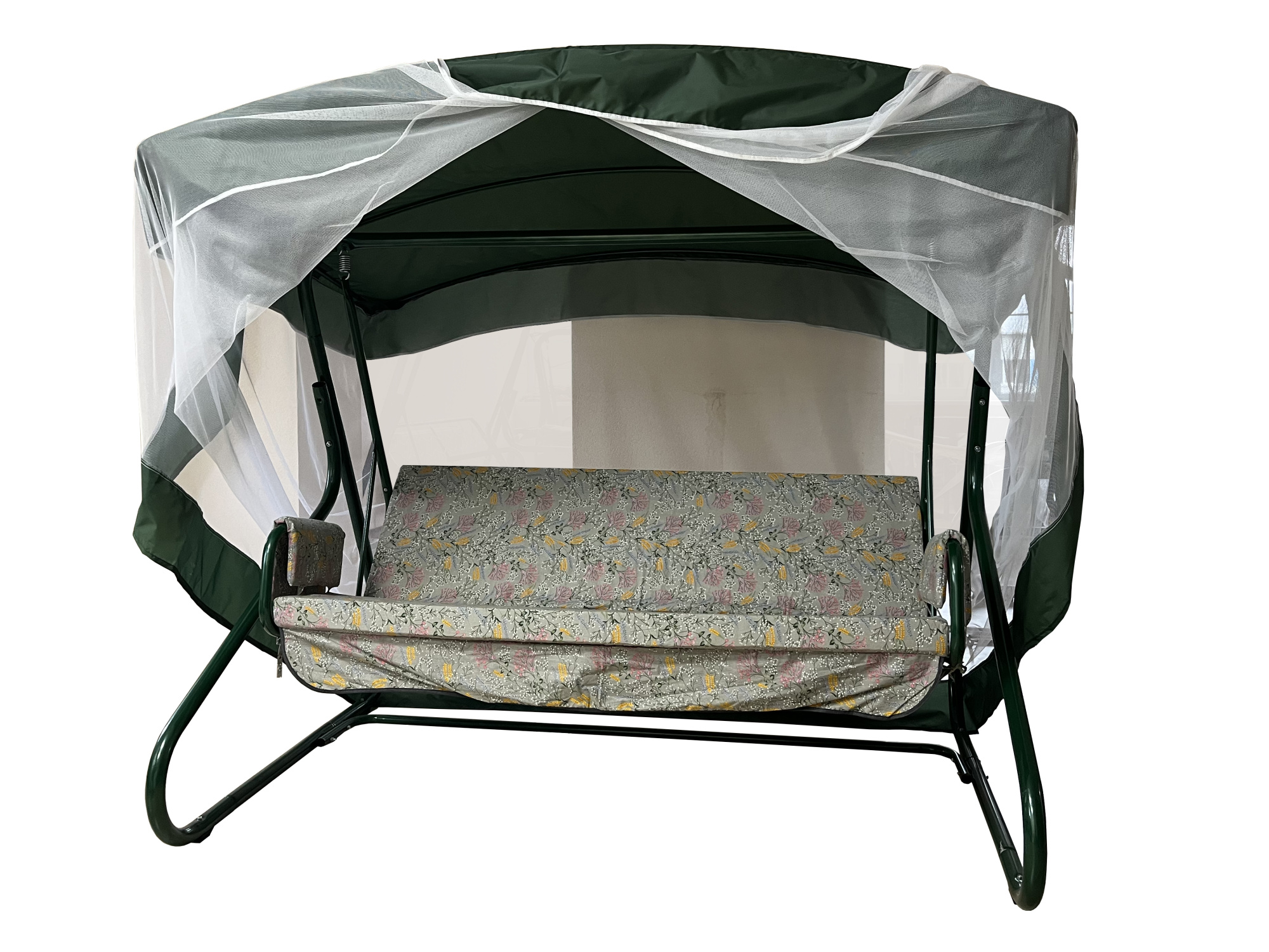 Качели садовые Garden Story 3-х местные Грация с москитной сеткой(каркас зеленый, м/э разноцветный рис.ветки)2 уп