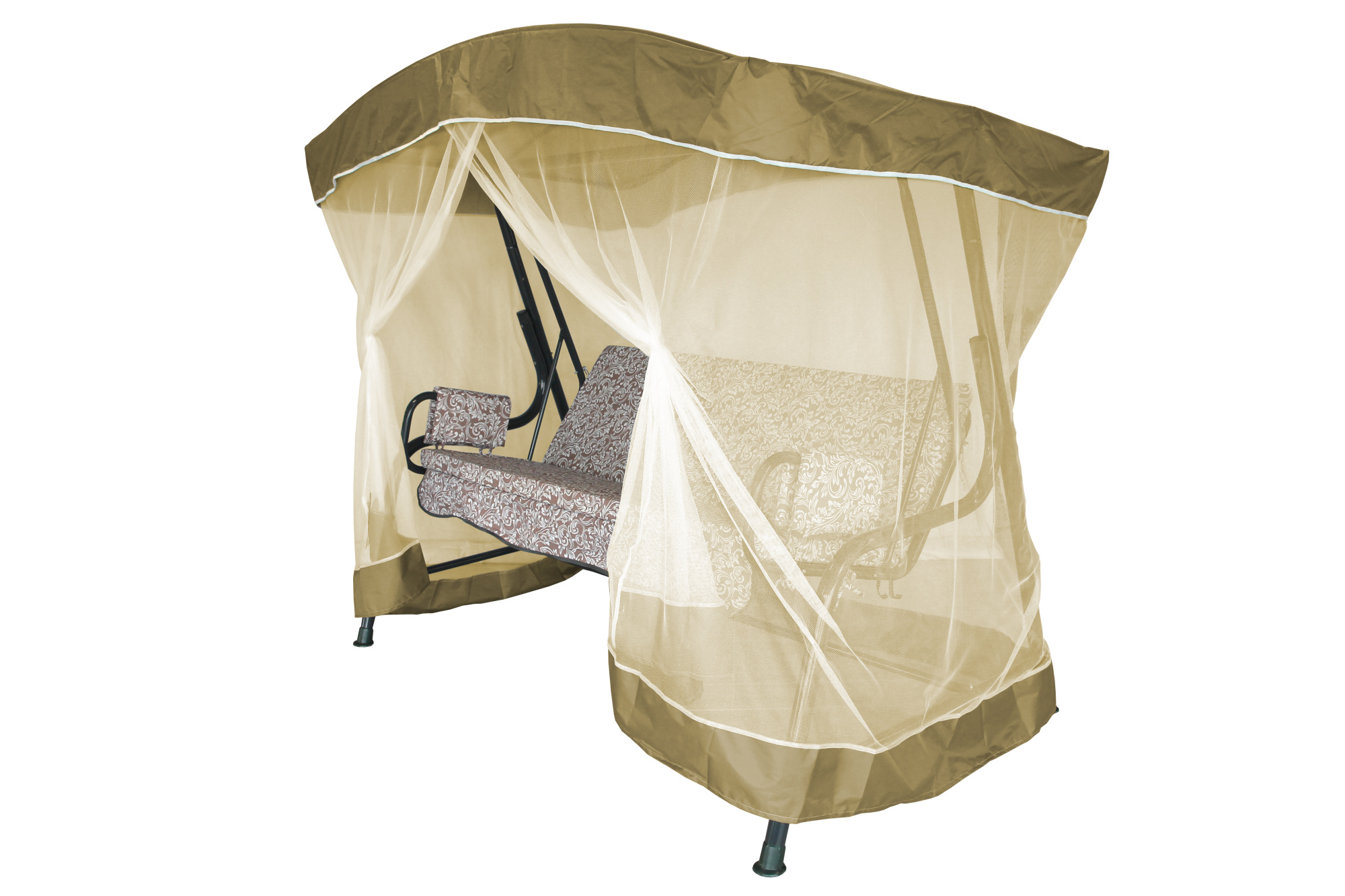 Качели садовые Garden Story 3-х местные Ирис с москитной сеткой(каркас серый, м/э коричневый рис.вензель)2 уп.