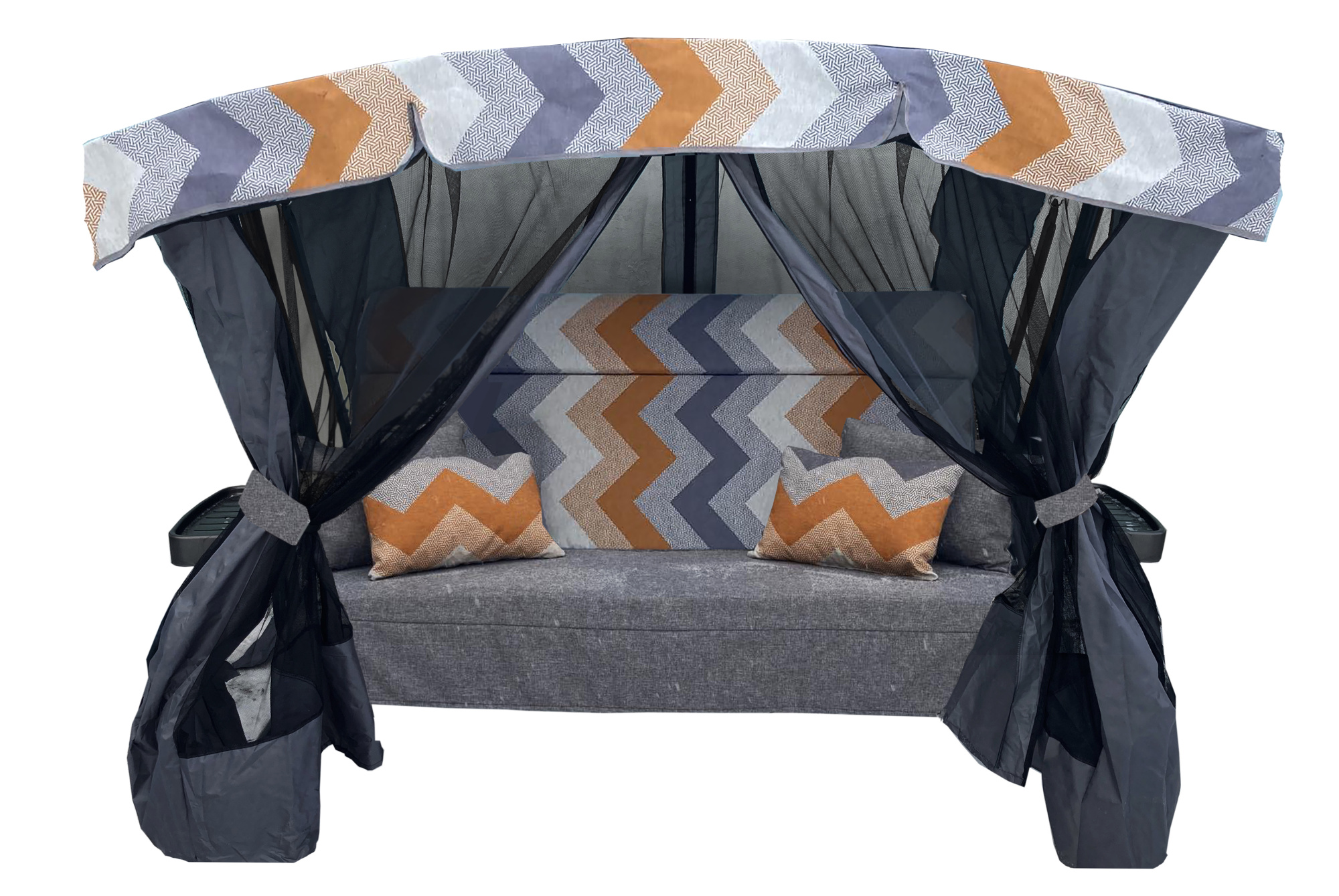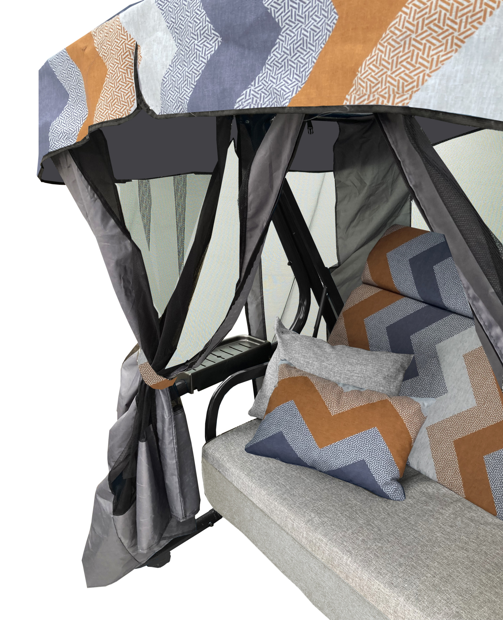 Качели садовые Garden Story 3-х местные Ранго Премиум Руна(каркас графит, м/э серый рис.зигзаг)2 уп.