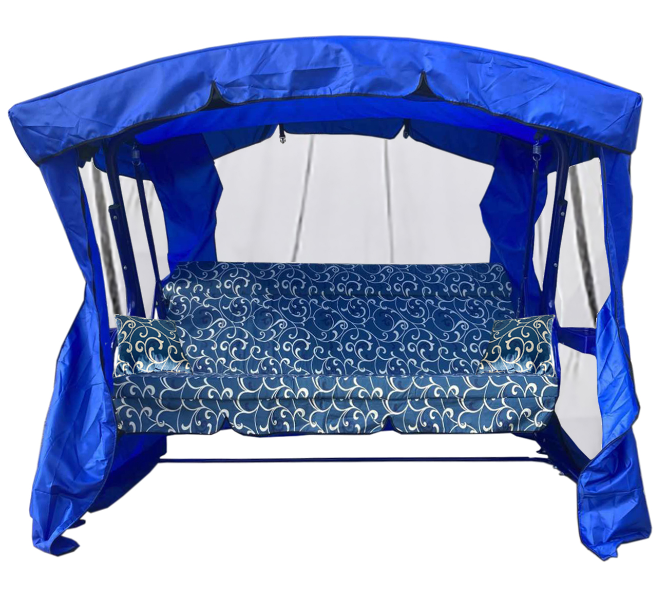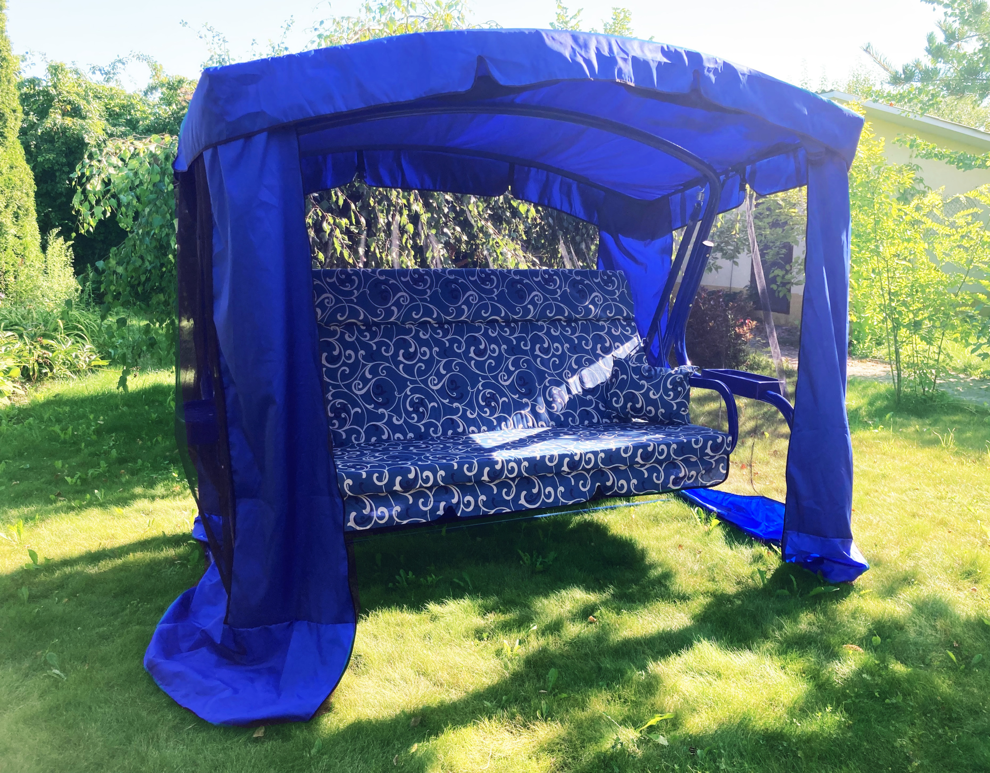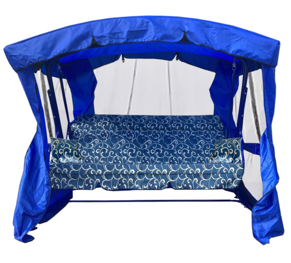 Качели садовые Garden Story 3-х местные Ранго(каркас синий, м/э синий рис.вензель)2 уп.