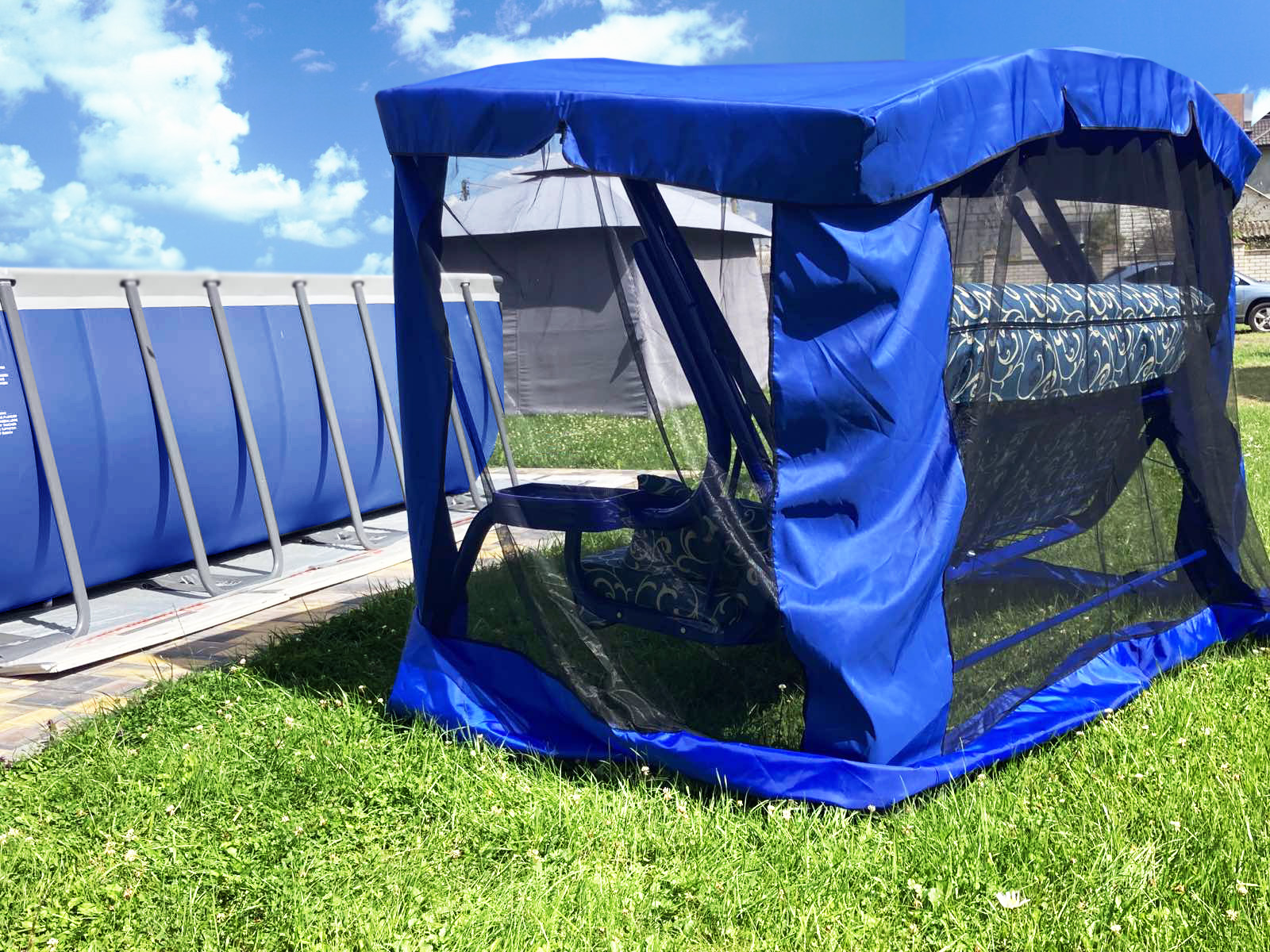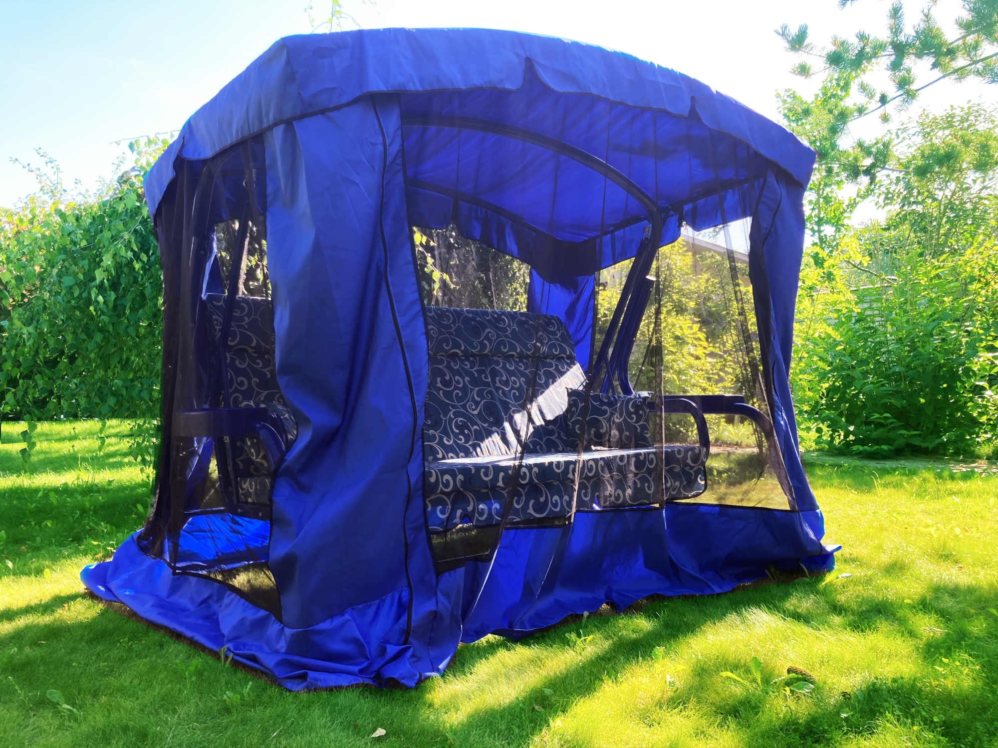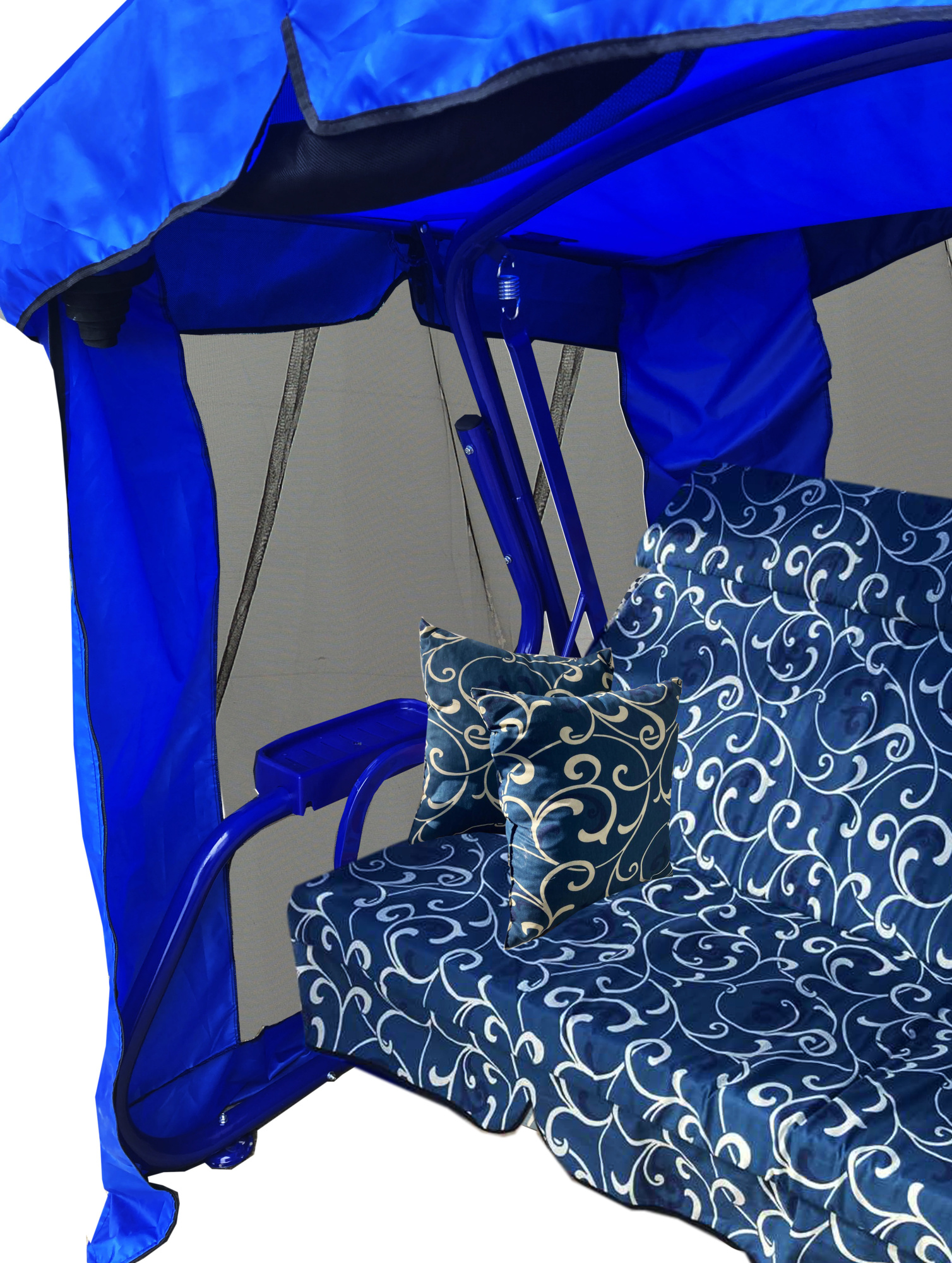 Качели садовые Garden Story 3-х местные Ранго(каркас синий, м/э синий рис.вензель)2 уп.