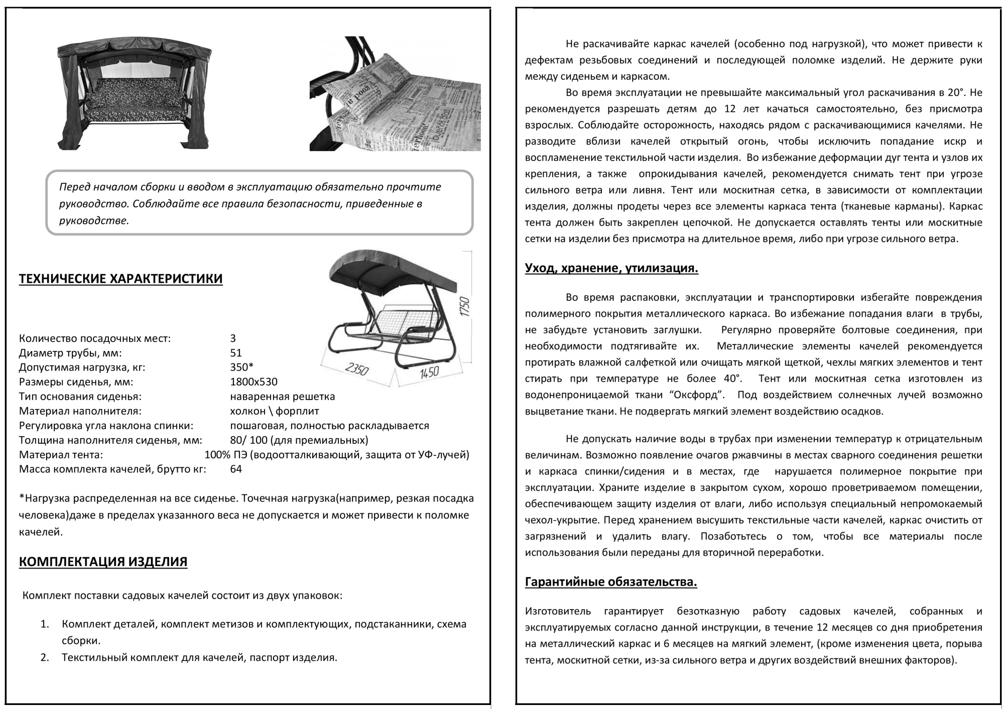 Габариты изделия (Ш/ГхДхВ) : 235х145х175 Цвет каркаса : синий Материал каркаса : сталь Труба : Ø51 Цвет чехла мягкого элемента/матраса : синий Наполнитель мягкого элемента/матраса : холлкон Толщина мягкого элемента : 80 Тип основания сиденья : сварная сетка Допустимая нагрузка : 350 Регулировка спинки : Да Подушки : Да Москитная сетка : Да Подголовник : Да Подстаканники : Да Механизм наклона : звеньями цепи на требуемый угол наклона, с фиксацией в горизонтальном положении Страна производства : БЕЛАРУСЬ Дополнительно : Комплектация: тент-противомоскитная сетка 2 подушки по цвету м/э Паллетная норма : 3Характеристики
