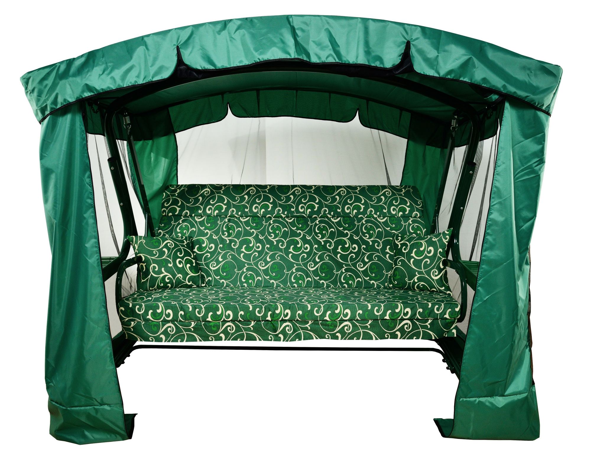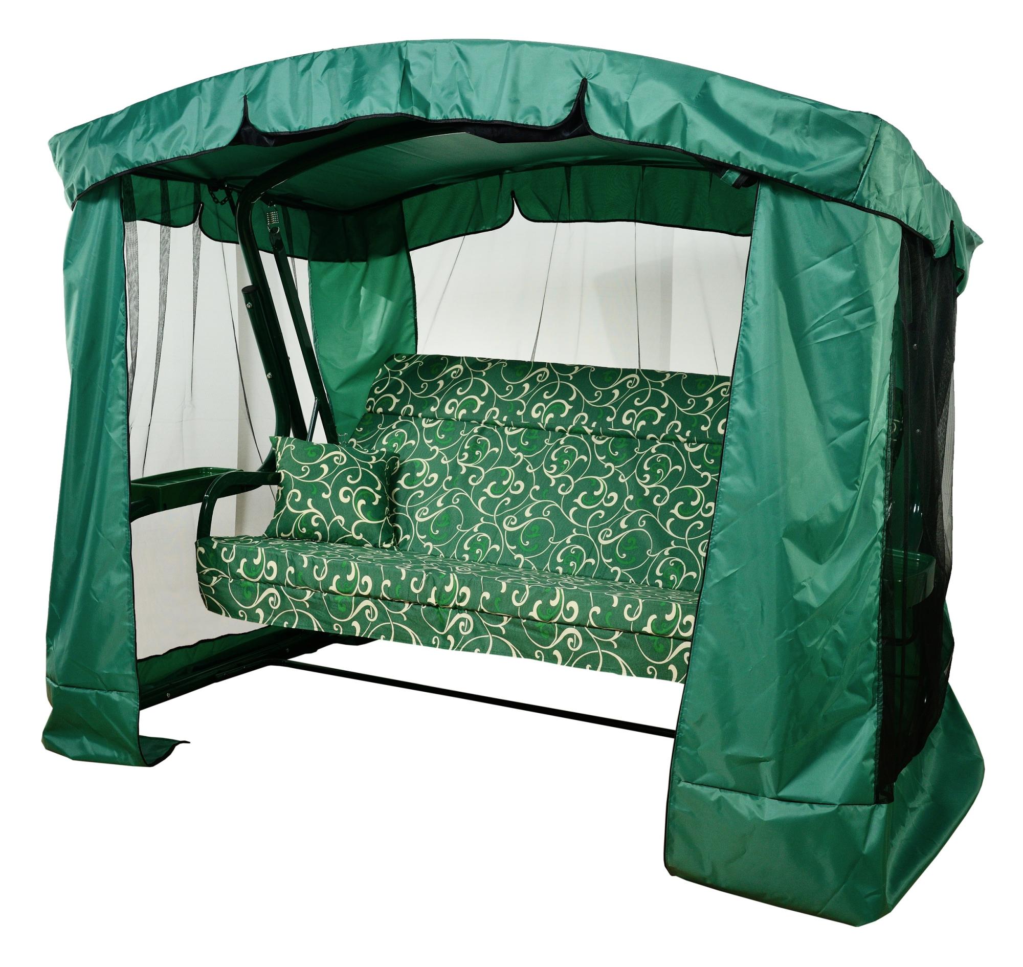 Качели садовые Garden Story 3-х местные Ранго(каркас зеленый, м/э зеленый рис.вензель)2 уп.