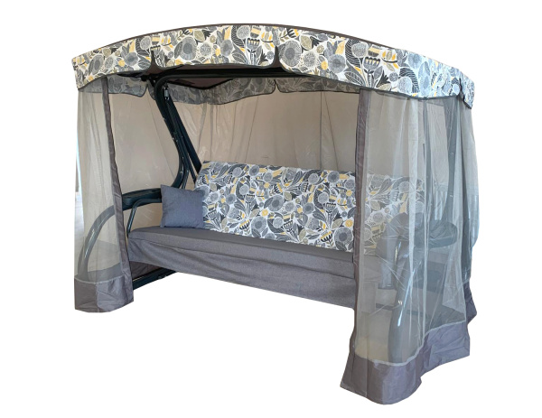Качели садовые Garden Story 3-х местные Секвойя(каркас антрацит, м/э серый рис.без рисунка)2 уп.