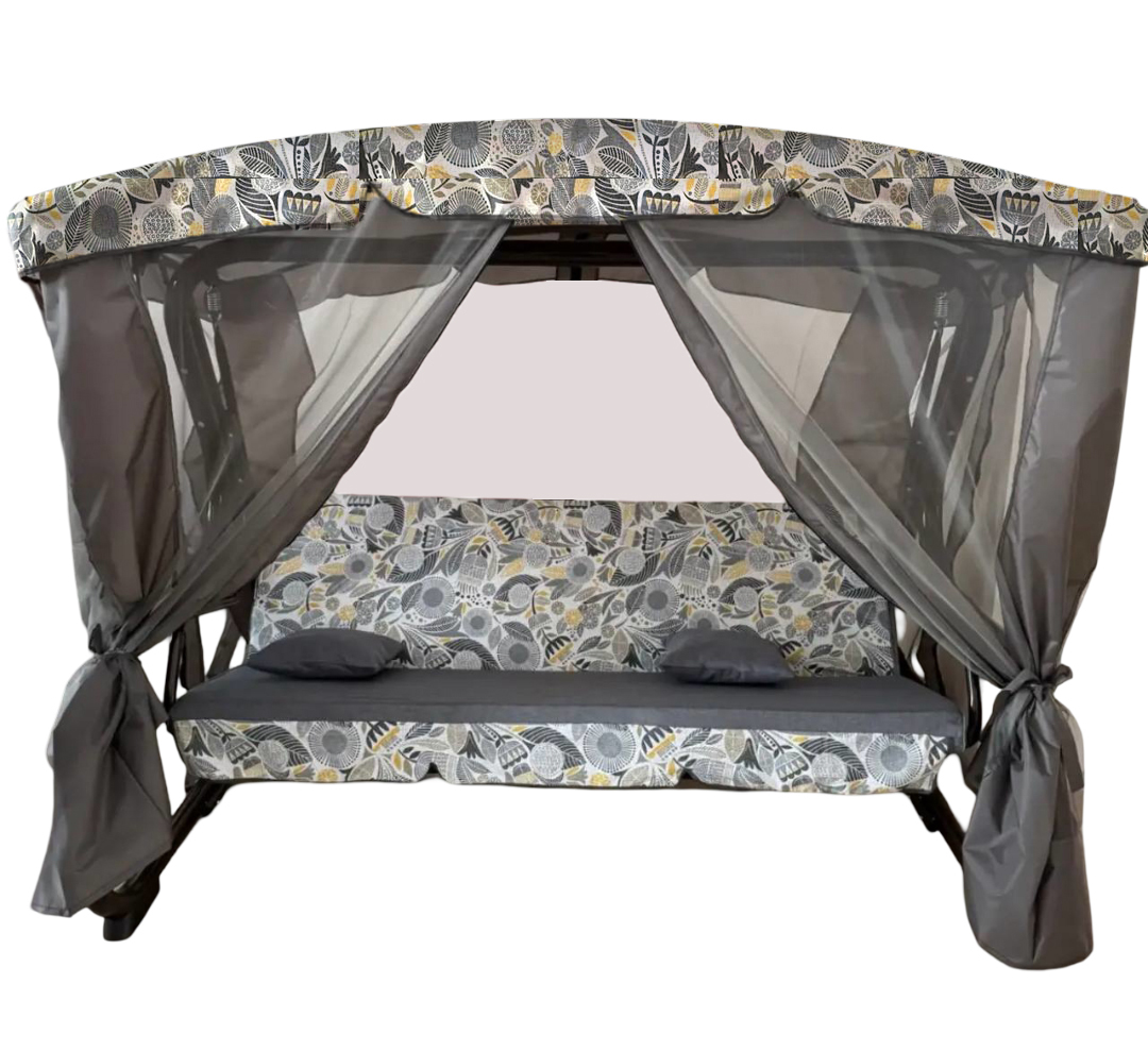 Качели садовые Garden Story 3-х местные Секвойя(каркас антрацит, м/э серый рис.цветы)2 уп.