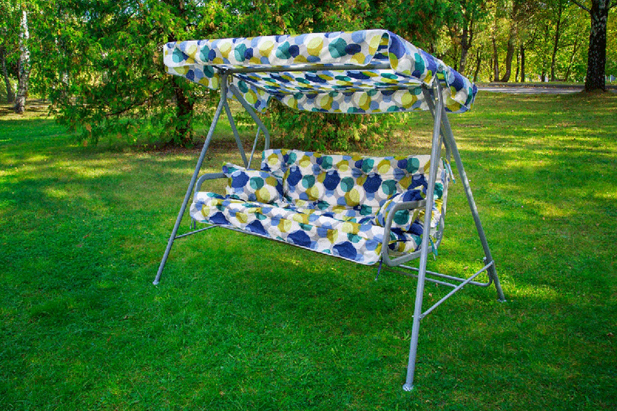 Качели садовые OLSA 2-х местные Бари(каркас серый, м/э разноцветный рис.круги)1 уп.