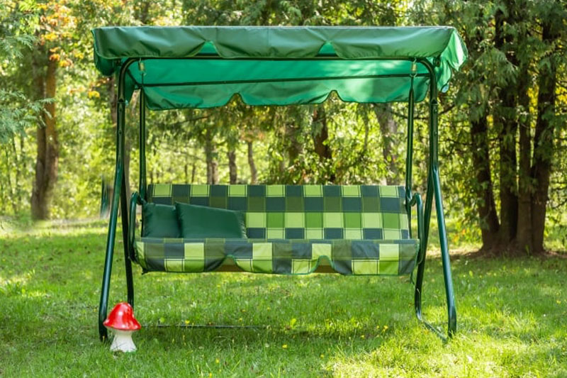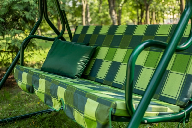 Качели садовые OLSA 2-х местные Фьюджи(каркас зеленый, м/э зеленый рис.клетка)1 уп.